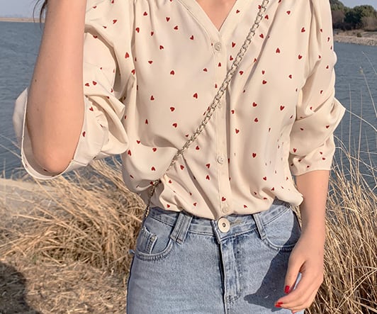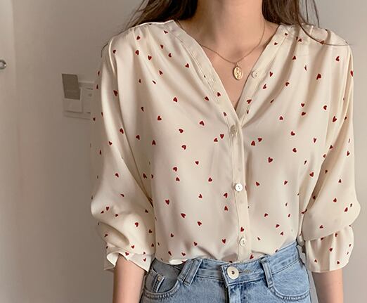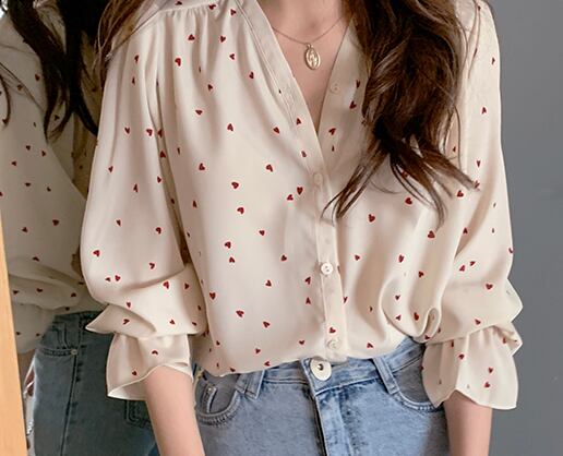 ハート柄ブラウス トップス ブラウス 袖あり 綿 柄 爽やか 大人スタイル 大人可愛い きれいめ シンプル カジュアル 大人 上品 おしゃれ かっこいい レトロ アジアン 大人可愛い 大人女子 こなれ感 ラブリー キュート 個性的 存在感 無地 春 秋 冬 10代 20代 30代 40代 50代 レディース ママ 女の子 オフィス ビジネス OL 通勤 学生 通学 デート お出かけ 女子会 休日 リゾート 旅行 着回し コーデ スタイル モテ サイズ