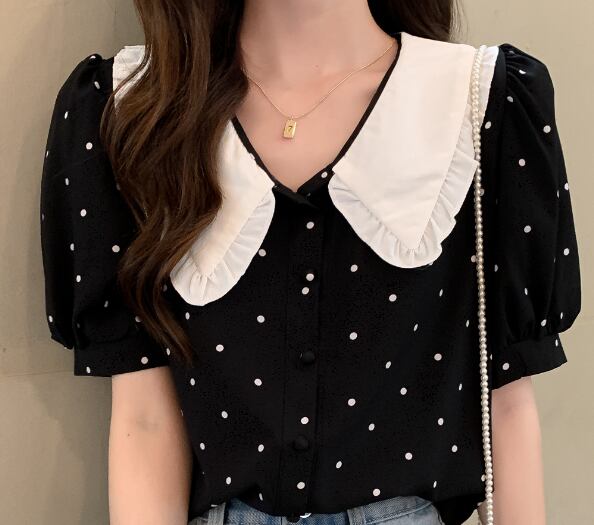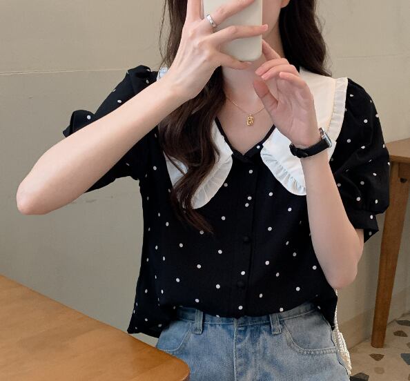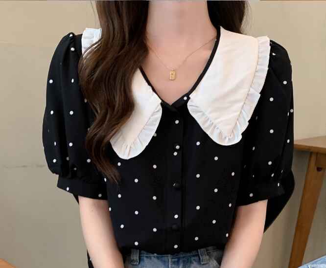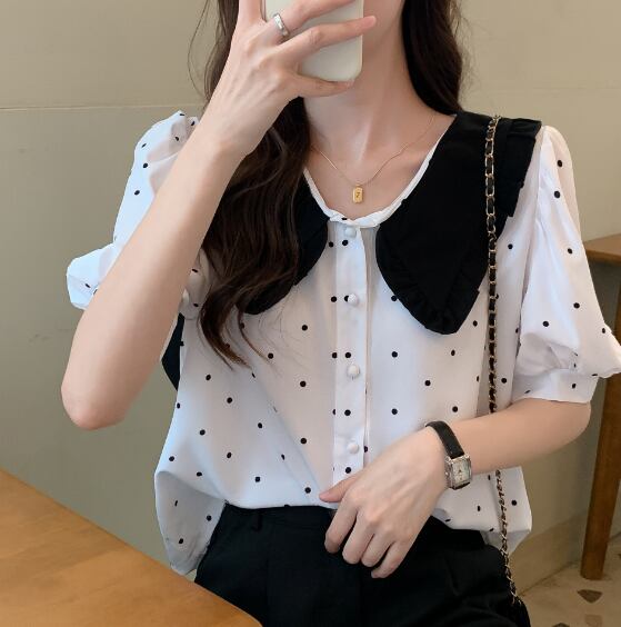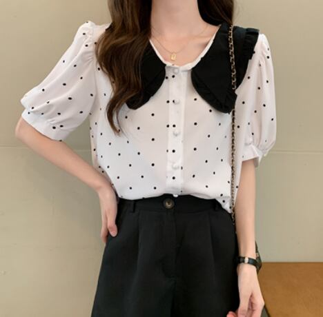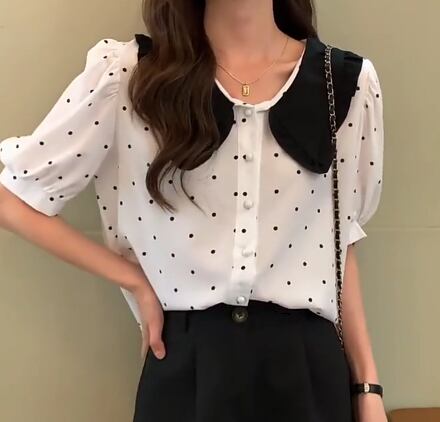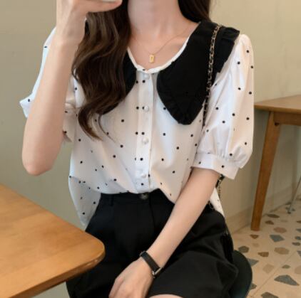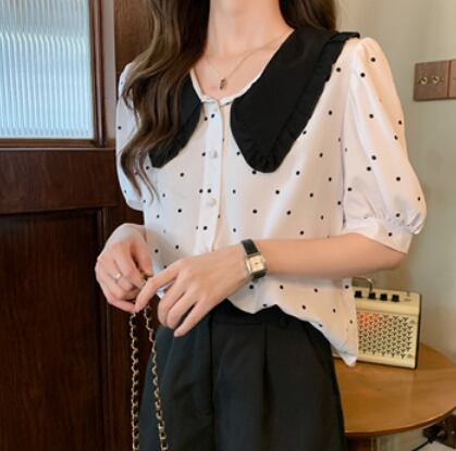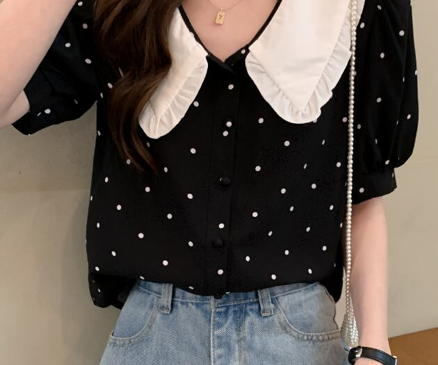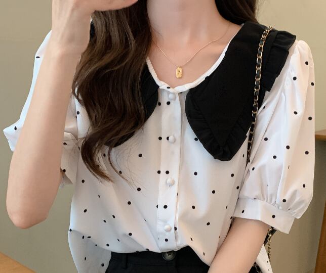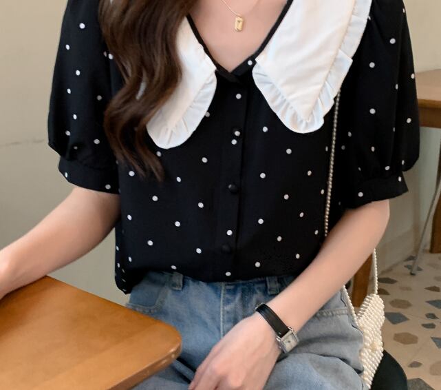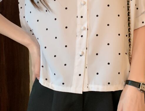 襟付きドット柄半袖ブラウス トップス ブラウス 袖あり 綿 半袖 爽やか 大人スタイル 大人可愛い きれいめ シンプル カジュアル 大人 上品 おしゃれ かっこいい レトロ アジアン 大人可愛い 大人女子 こなれ感 ラブリー キュート 個性的 存在感 無地 春 秋 冬 10代 20代 30代 40代 50代 レディース ママ 女の子 オフィス ビジネス OL 通勤 学生 通学 デート お出かけ 女子会 休日 リゾート 旅行 着回し コーデ スタイル モテ サイズ