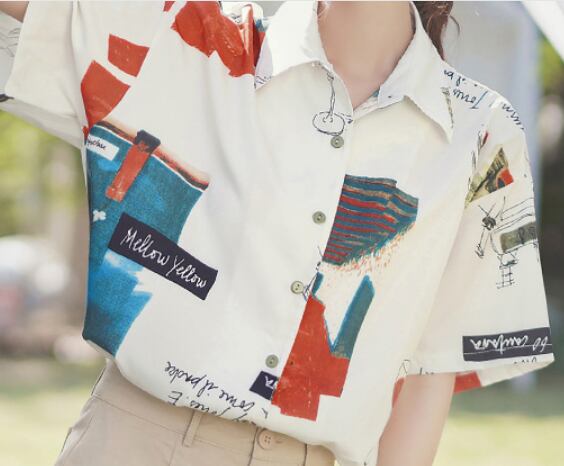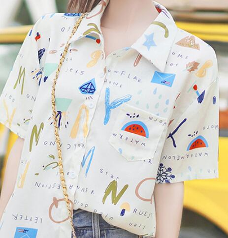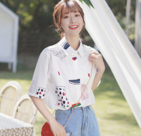 ポップ柄入り半袖ブラウス トップス ロング丈 袖あり 綿 半袖 爽やか ラフ 可愛い きれいめ シンプル カジュアル 大人 上品 おしゃれ かっこいい レトロ アジアン 大人可愛い 大人女子 こなれ感 ラブリー キュート 個性的 存在感 無地 春 秋 冬 10代 20代 30代 40代 50代 レディース ママ 女の子 オフィス ビジネス OL 通勤 学生 通学 デート お出かけ 女子会 休日 リゾート 旅行 着回し コーデ スタイル モテ サイズ