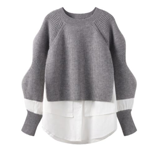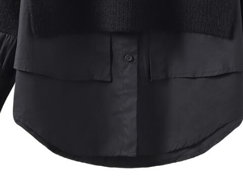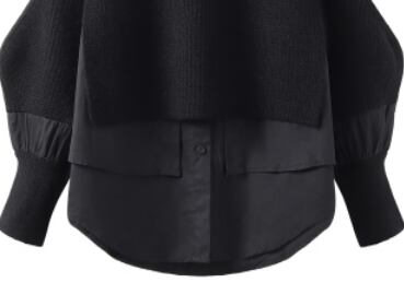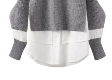 ざっくりニットとブラウスが重なっているように見えるデザインでラフ&カジュアルコーデにぴったりです。