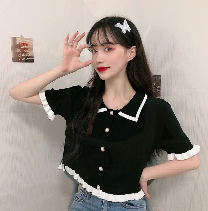 半袖ニットカーディガン トップス カーディガン ショート ショート丈 袖あり 半袖 襟付き フリル 前開き かわいい 大人可愛い きれいめ シンプル カジュアル 大人 上品 おしゃれ お洒落 大人可愛い 大人女子 こなれ感 キュート ガーリー モダン 主役級 存在感 無地 春 夏 10代 20代 30代 レディース OL 通勤 学生 通学 デート お出かけ 女子会 休日 着回し 普段使い 重ね着 韓国系 オルチャン サイズ M L XL 2XL 色展開 白 ホワイト 黒 ブラック