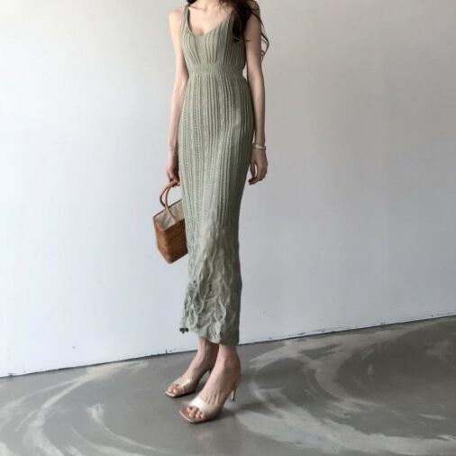 韓国ファッションで人気の、美スタイルワンピ。ボディラインがとても綺麗に見えますよ。丈が長いので、年齢を問わず着ていただけるデザインです。足首をシュッと細く見せるので、華奢な雰囲気を演出。