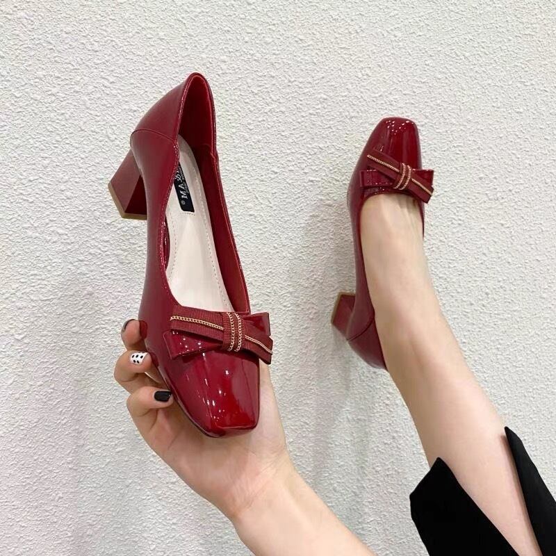 結婚式 お呼ばれ パンプス エナメル 5cmヒール 太ヒール スクエアトゥ リボン 美脚 脚長 かわいい 大人可愛い きれいめ 上品 おしゃれ フォーマル きちんと感 ラブリー キュート ガーリー 主役級 存在感 無地 オールシーズン 10代 20代 レディース お出かけ 女子会 休日 パーティー イベント ホテル レストラン 高見え モテ 新作 インスタ映え サイズ 22.0-245 色展開 ワインレッド ブラック ベージュ