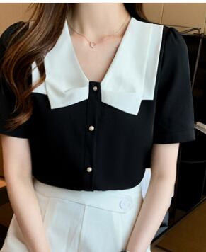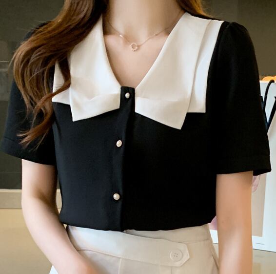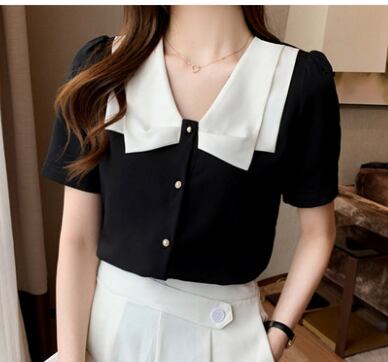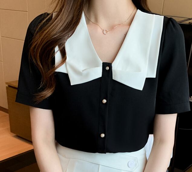 大きな襟がポイントの半そでトップスです。