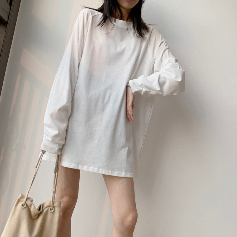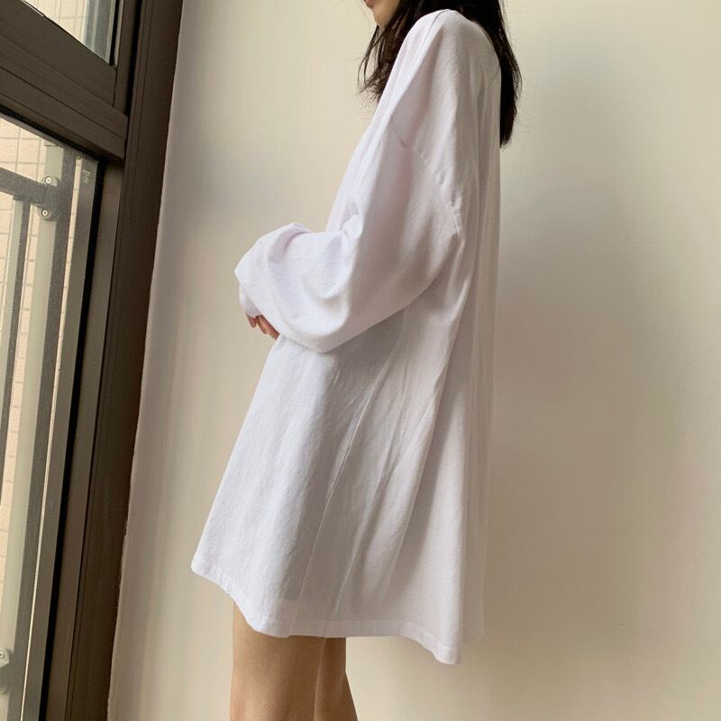 トップス Tシャツ 白シャツ ミディアム丈 袖あり 長袖 ラウンドネック ストレート ワイド サイドスリット 大人可愛い シンプル カジュアル おしゃれ かっこいい こなれ感 ラフ メンズライク ボーイッシュ ルーズ クール 主役級 抜け感 ストリート系 無地 春 秋 10代 20代 レディース お出かけ 休日 イベント 旅行 着回し 普段使い 韓国系 ファッション 楽ちん 体系カバー トレンド インスタ映え サイズ S M L XL 2XL ホワイト