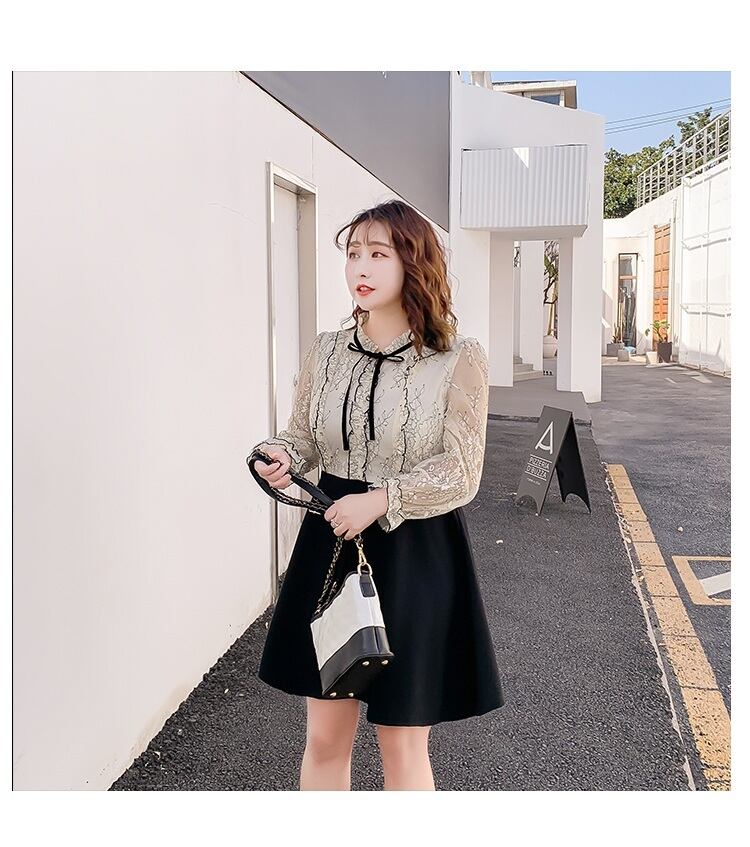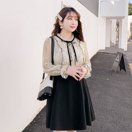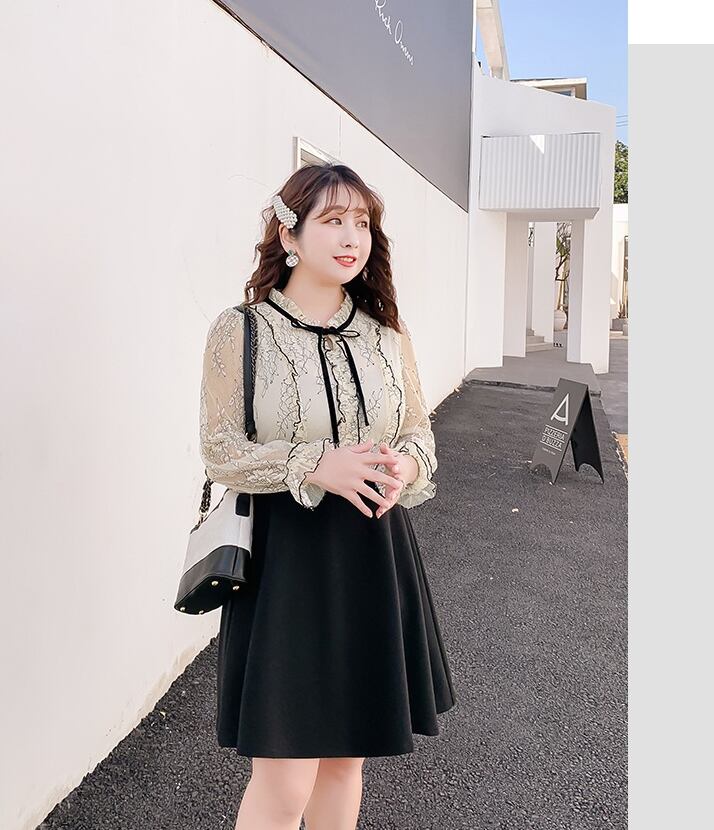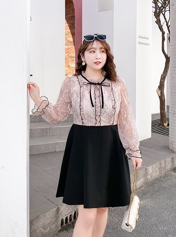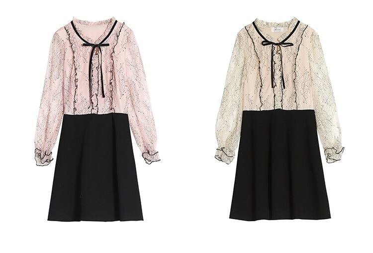 ドッキングワンピース ワンピース フレアワンピース 膝丈 ひざ丈 袖あり 長袖 ハイネック ドッキング レース リボン ドッキング ハイウエスト 透け感 ポリエステル かわいい 大人可愛い きれいめ シンプル カジュアル 大人 上品 おしゃれ お洒落 大人可愛い 大人女子 こなれ感 キュート ガーリー モダン 主役級 存在感 無地 春 秋 10代 20代 30代 レディース 学生 通学 デート お出かけ 女子会 休日 着回し 普段使い 重ね着 韓国系 オルチャン サイズ XL 2XL 3XL 4XL