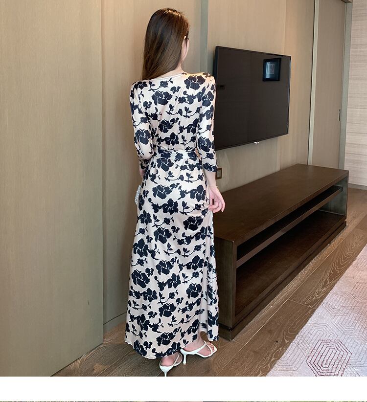 カシュクールワンピース ワンピース フレアワンピース ワンピドレス ミモレ ミモレ丈 ロング ロング丈 袖あり 長袖 Vネック カシュクール フレア ウエストマーク ウエストリボン ハイウエスト かわいい 大人可愛い きれいめ シンプル カジュアル 大人 上品 おしゃれ お洒落 大人可愛い 大人女子 こなれ感 キュート ガーリー モダン 主役級 存在感 柄 花柄 春 秋 10代 20代 30代 レディース OL 通勤 学生 通学 デート お出かけ 女子会 休日 着回し 普段使い 重ね着 韓国系 オルチャン