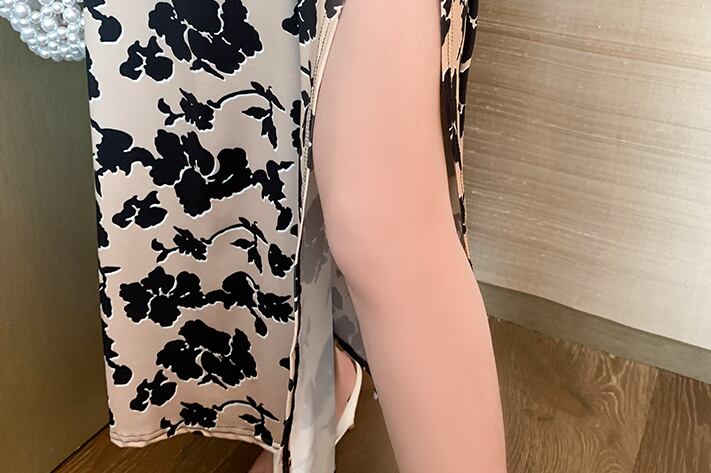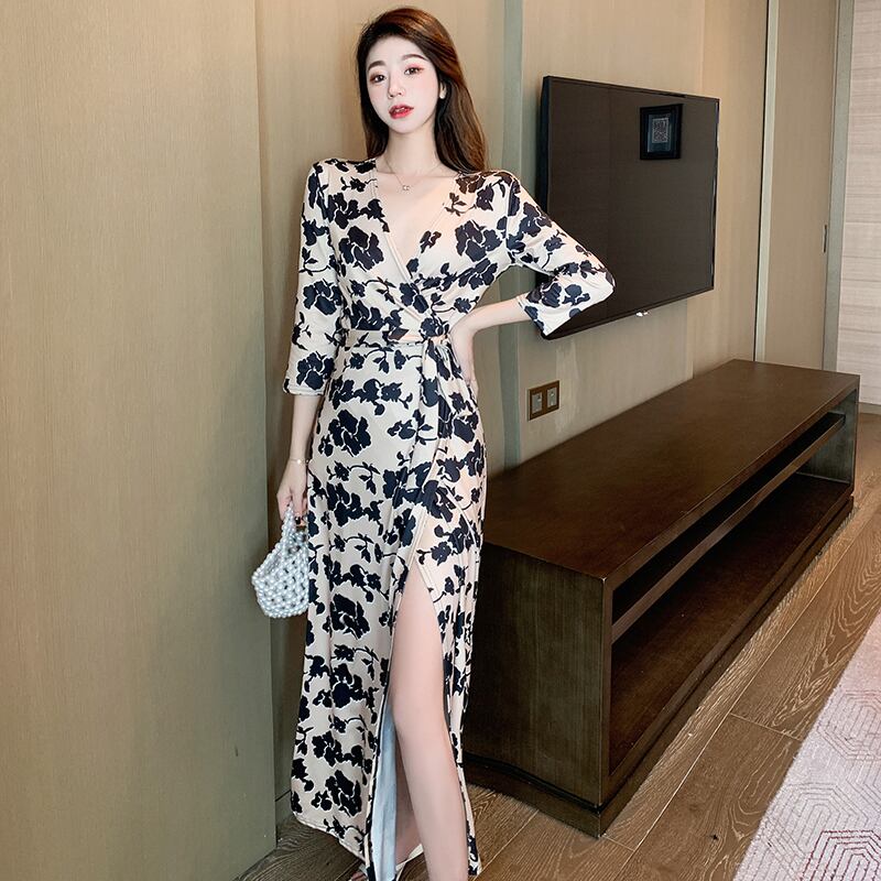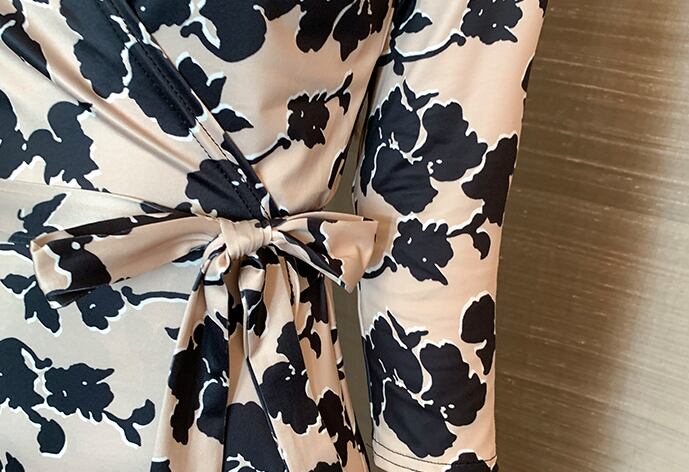 カシュクールデザインでおしゃれな花柄ワンピースす。