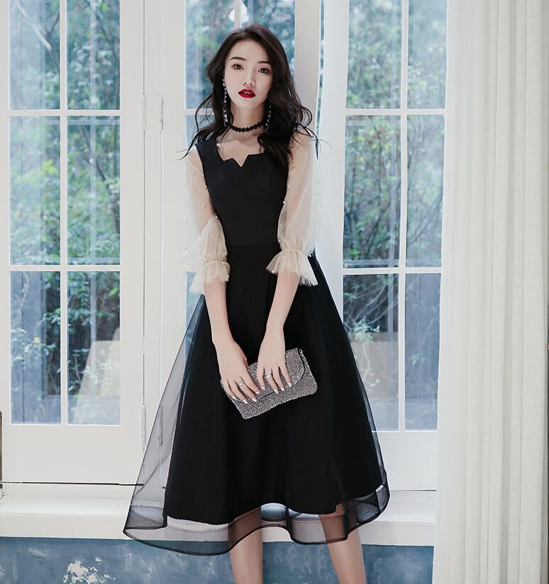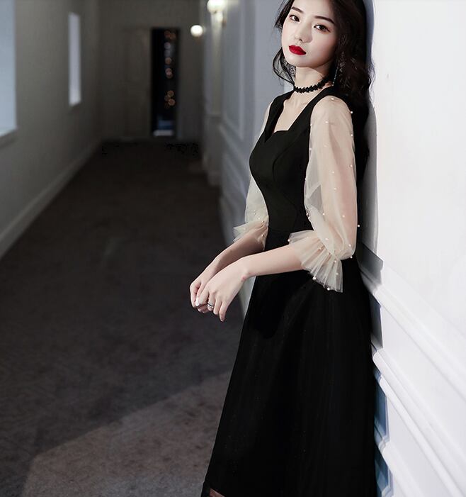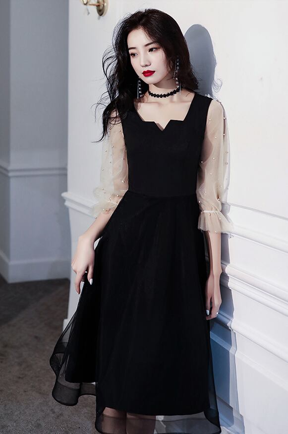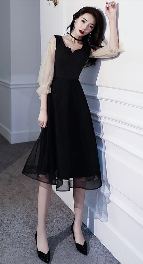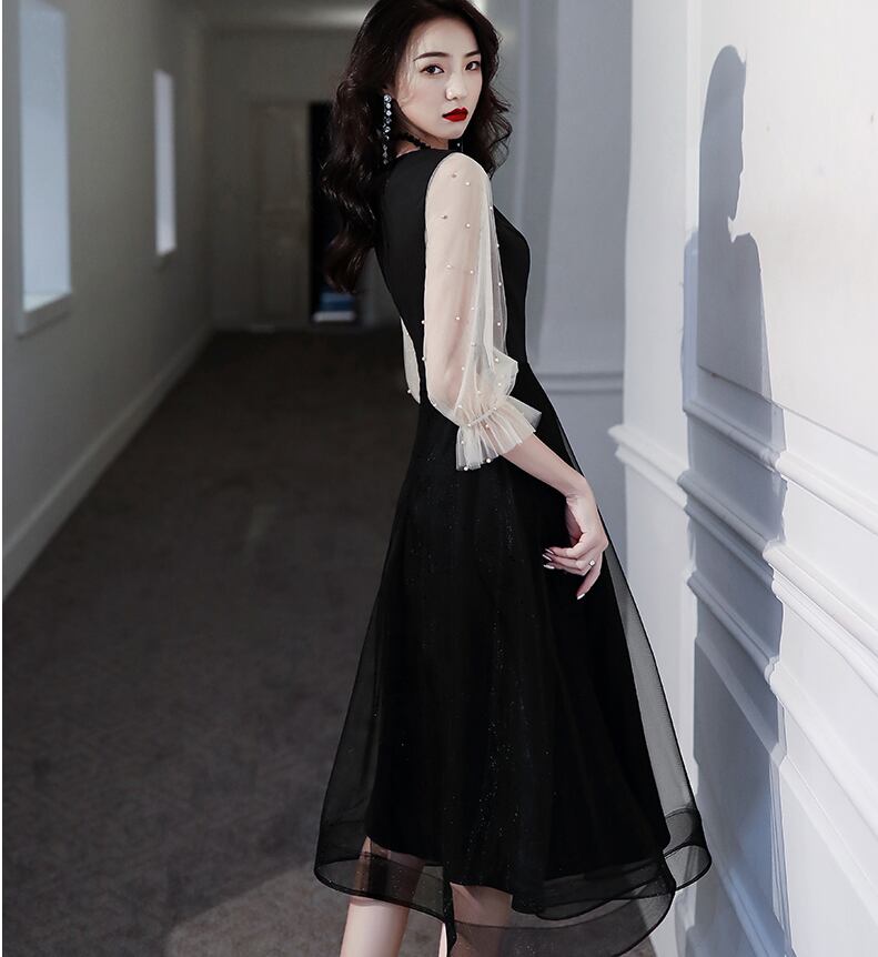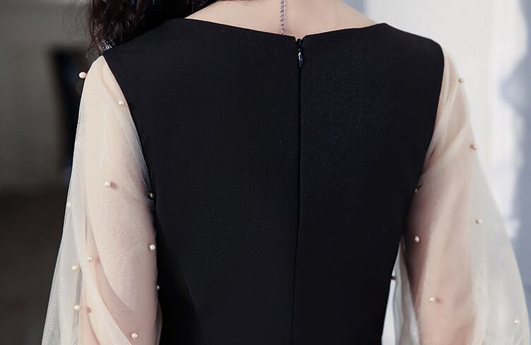 ふんわりシースルー袖にパールをあしらった大人可愛いワンピース。
