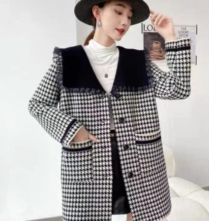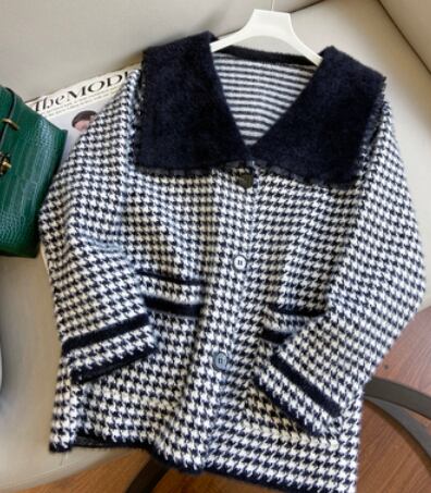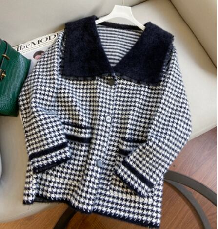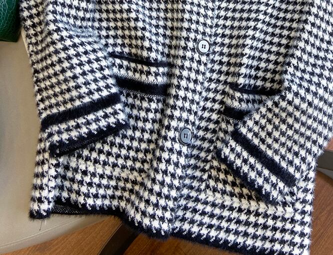 千鳥格子柄のカーディガンコートです。