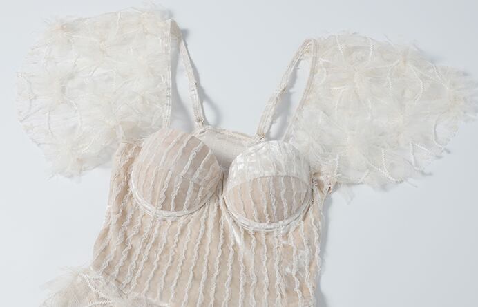 存在感が抜群で、華やかデザインが魅力的◎ベージュ系カラーで清楚感もアピール出来ちゃいます。気になるところを自然にカバーしつつ、谷間を綺麗に盛ってくれます。ナイトプールなど、インスタ映えスポットで大活躍。