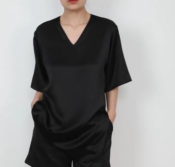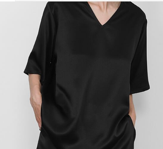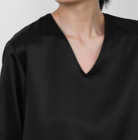 Vネック半袖トップス ロング丈 袖あり 綿 光沢 爽やか 大人スタイル 大人可愛い きれいめ シンプル カジュアル 大人 上品 おしゃれ かっこいい レトロ アジアン 大人可愛い 大人女子 こなれ感 ラブリー キュート 個性的 存在感 無地 春 秋 冬 10代 20代 30代 40代 50代 レディース ママ 女の子 オフィス ビジネス OL 通勤 学生 通学 デート お出かけ 女子会 休日 リゾート 旅行 着回し コーデ スタイル モテ サイズ