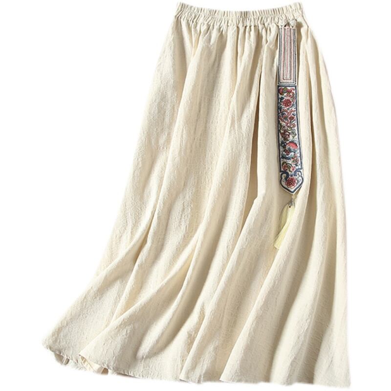 綿麻素材のサラッとした肌触りが涼しげで心地良いロングスカート。