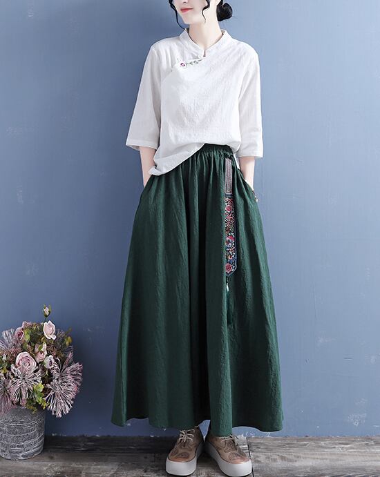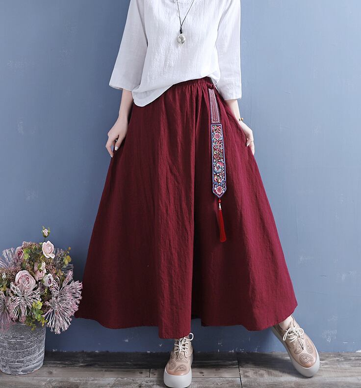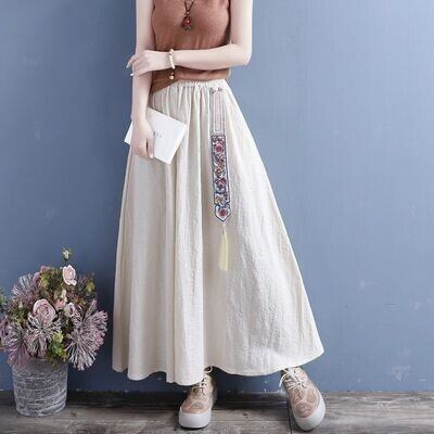 フレアスカート スカート ボトムス ロングスカート フレアスカート ロング ロング丈 フレア Aライン 刺繍 ハイウエスト ウエストゴム 綿 麻 リネン かわいい 大人可愛い きれいめ シンプル カジュアル 大人 上品 おしゃれ お洒落 アジアン エスニック エキゾチック 大人可愛い 大人女子 こなれ感 キュート ガーリー モダン 主役級 存在感 無地 春 夏 秋 10代 20代 30代 レディース 学生 通学 デート お出かけ 女子会 休日 着回し 普段使い 韓国系 オルチャン グリーン ワインレッド
