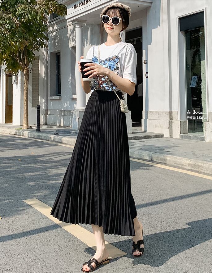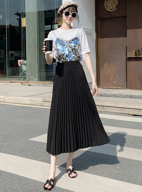 プリーツスカート スカート ボトムス ロングスカート プリーツスカート ロング ロング丈 フレア Aライン プリーツ ハイウエスト ウエストゴム かわいい 大人可愛い きれいめ シンプル カジュアル 大人 上品 おしゃれ お洒落 大人可愛い 大人女子 こなれ感 キュート ガーリー モダン 主役級 存在感 無地 春 夏 秋 10代 20代 30代 レディース OL 通勤 学生 通学 デート お出かけ 女子会 休日 着回し 普段使い 韓国系 オルチャン 色展開 黒 ブラック アプリコット