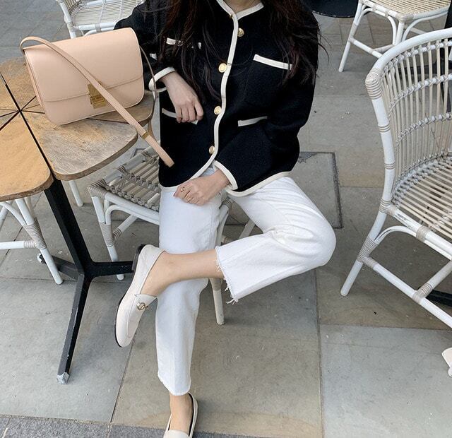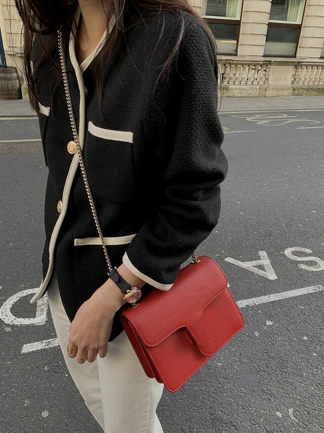 上品に縁取ったパイピングのラインがアクセントになりさっと羽織るだけで華のある着こなしに。