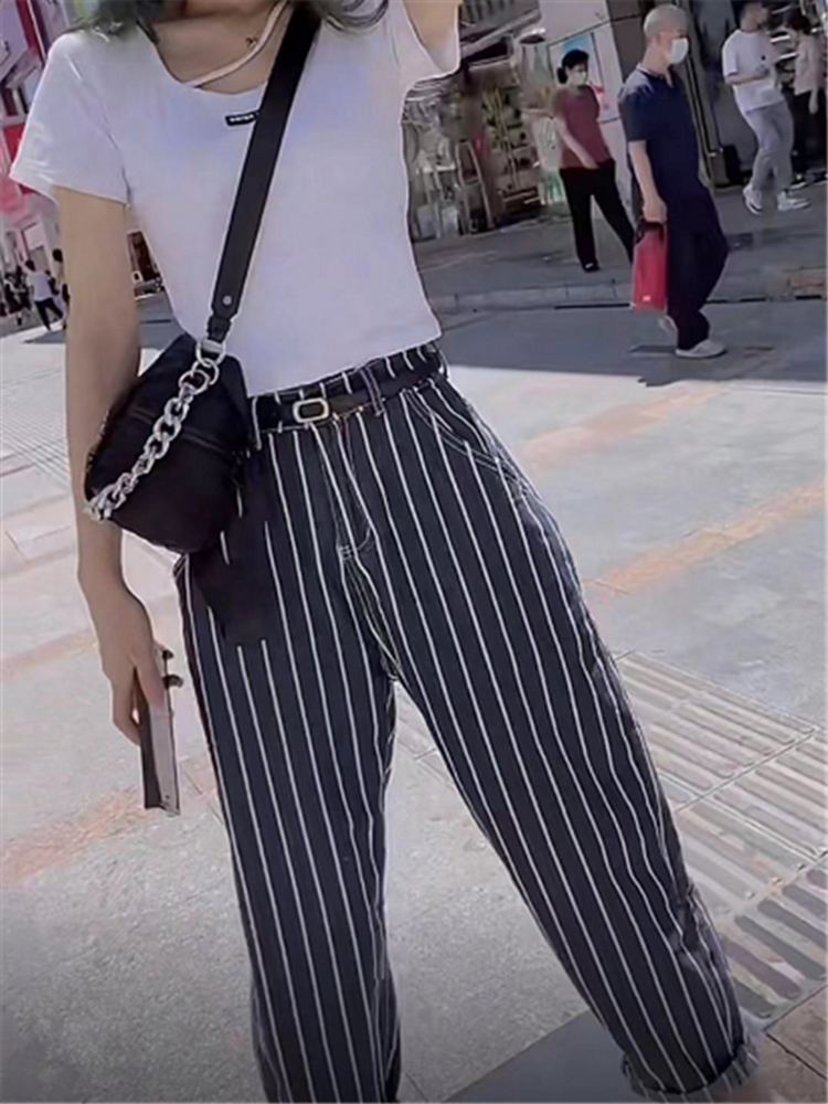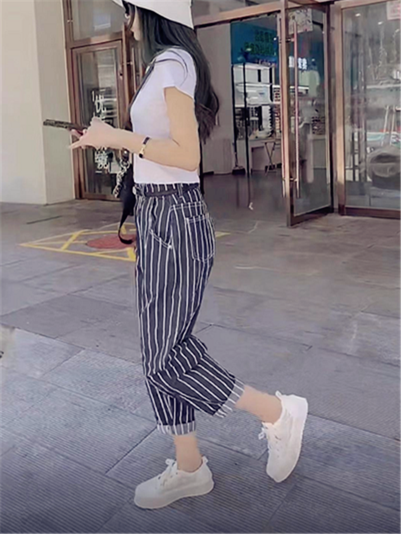 ストライプ柄デニムパンツ ボトムス パンツ デニムパンツ 9分丈 ハイウエスト デニム かわいい 大人可愛い きれいめ シンプル カジュアル 大人 上品 おしゃれ お洒落 かっこいい レトロ 大人可愛い 大人女子 こなれ感 キュート エレガント モダン 主役級 存在感 柄 ストライプ 春 夏 秋 10代 20代 30代 レディース 学生 通学 デート お出かけ 女子会 休日 着回し 普段使い 韓国系 オルチャン サイズ S M L XL 2XL 色展開 青 ブルー