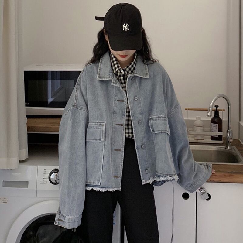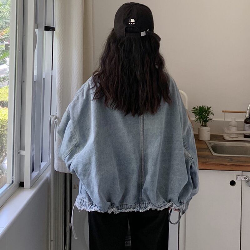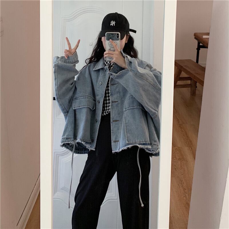 ゆるだぼ感がかわいいビッグサイズのカジュアルデニムジャケット。
