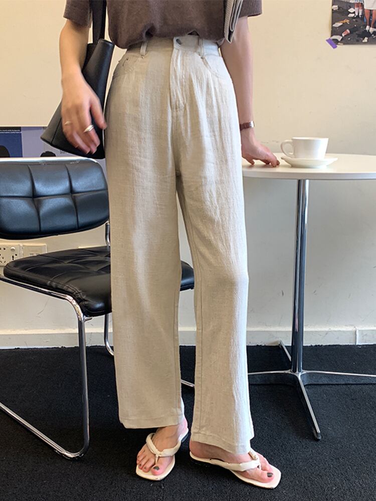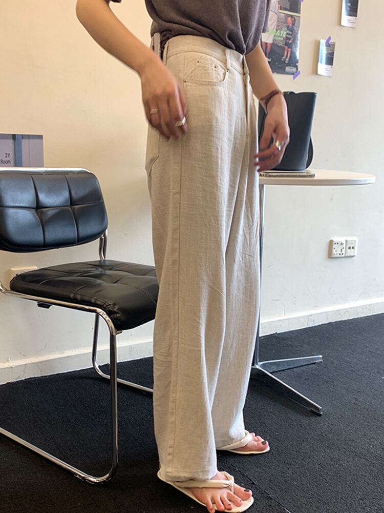 ボトムス パンツ ワイドパンツ ロング丈 ワイド ポケット ハイウエスト リネン きれいめ シンプル カジュアル かっこいい こなれ感 とろみ感 無地 春 夏 20代 30代 40代 レディース 女性用 ママ お出かけ 休日 着回し 普段使い 脚長 S M L アプリコット