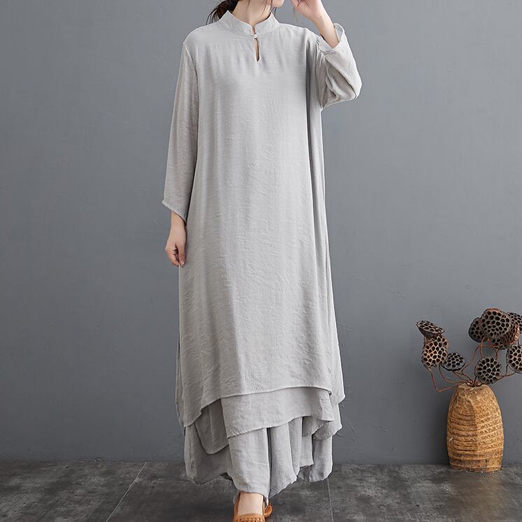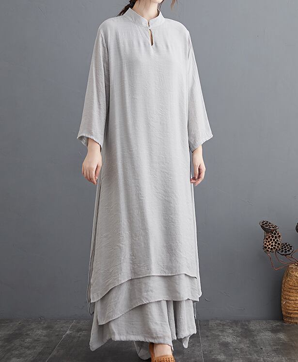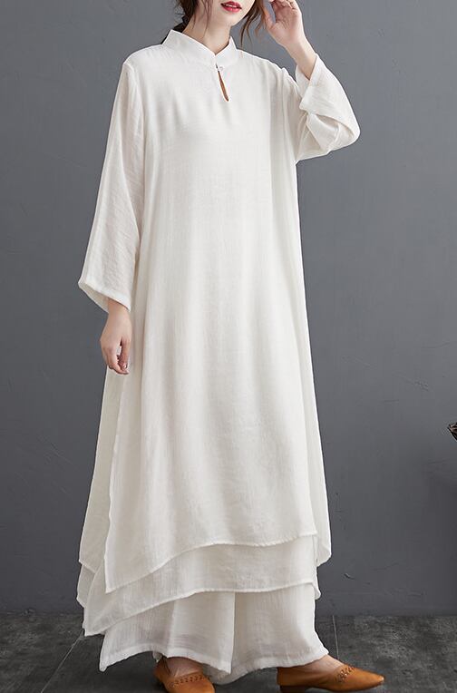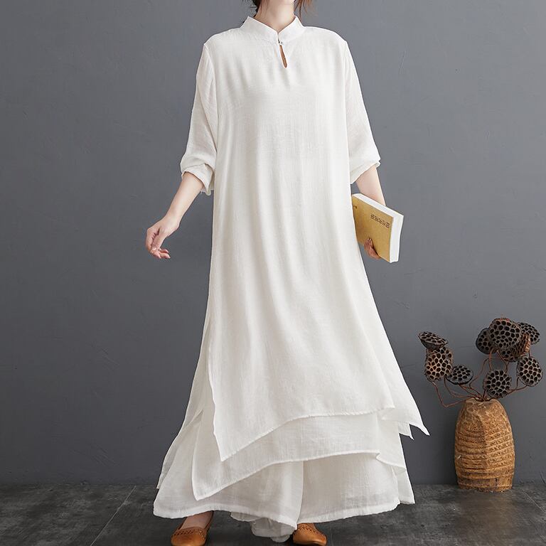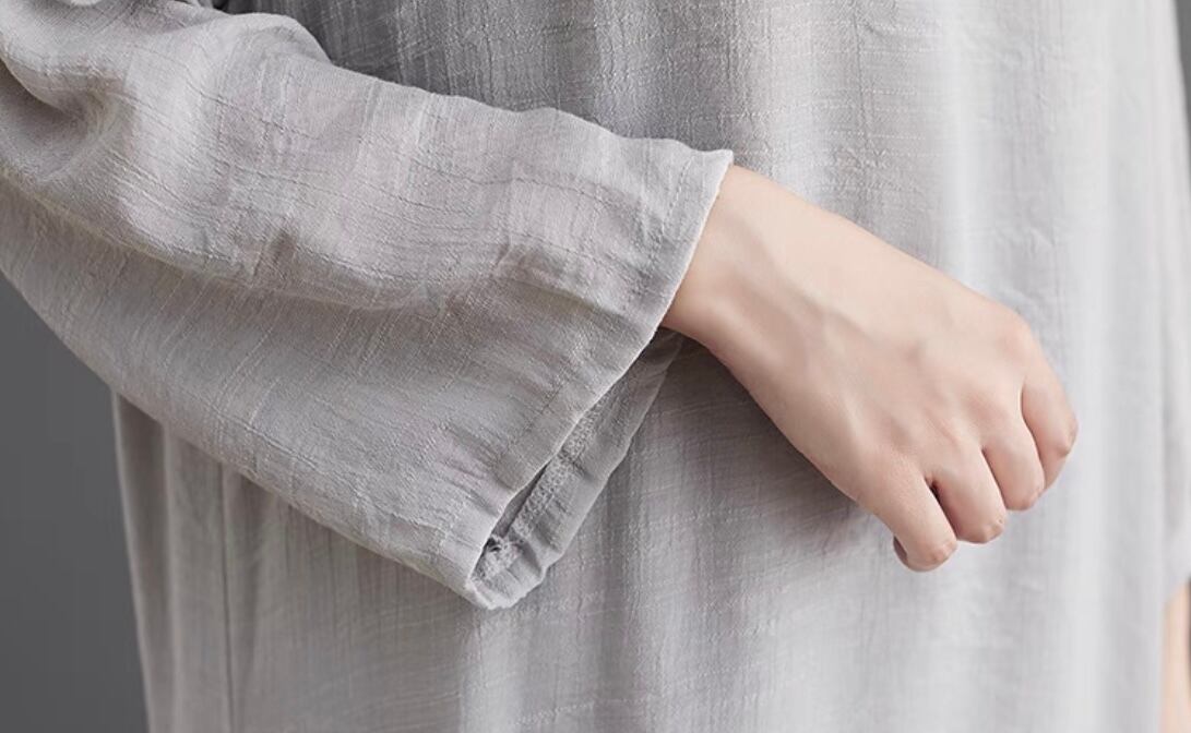 中国の衣裳のようなレトロでシンプルなデザインのワンピースです。ゆったり着られる大きめのサイズが◎抜け感があり、フレアシルエットが美しくなびきます。まったりと、リラックスした時間が過ごせるストレスフリーな着こなしが出来ますよ。