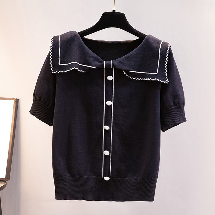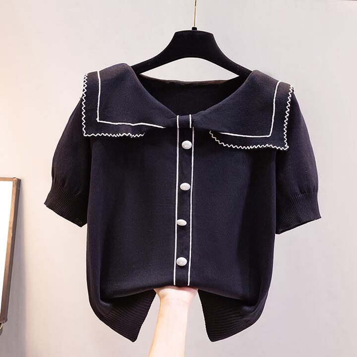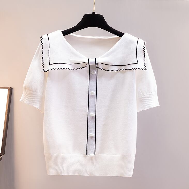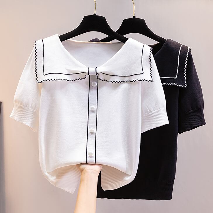 トップス Tシャツ セーター ミディアム丈 袖あり 半袖 襟付き ポロカラー ストレート リブ ニット 薄手 かわいい 大人可愛い きれいめ シンプル 上品 おしゃれ こなれ感 ラブリー キュート ガーリー エレガント 無地 春 夏 2022 10代 20代 30代 レディース オフィス 通勤 デート お出かけ 女子会 休日 ホテル レストラン 着回し 普段使い 韓国系 ファッション モテ 新作 インスタ映え サイズ S M L XL 色展開 ホワイト ブラック 大人カラー モノトーン