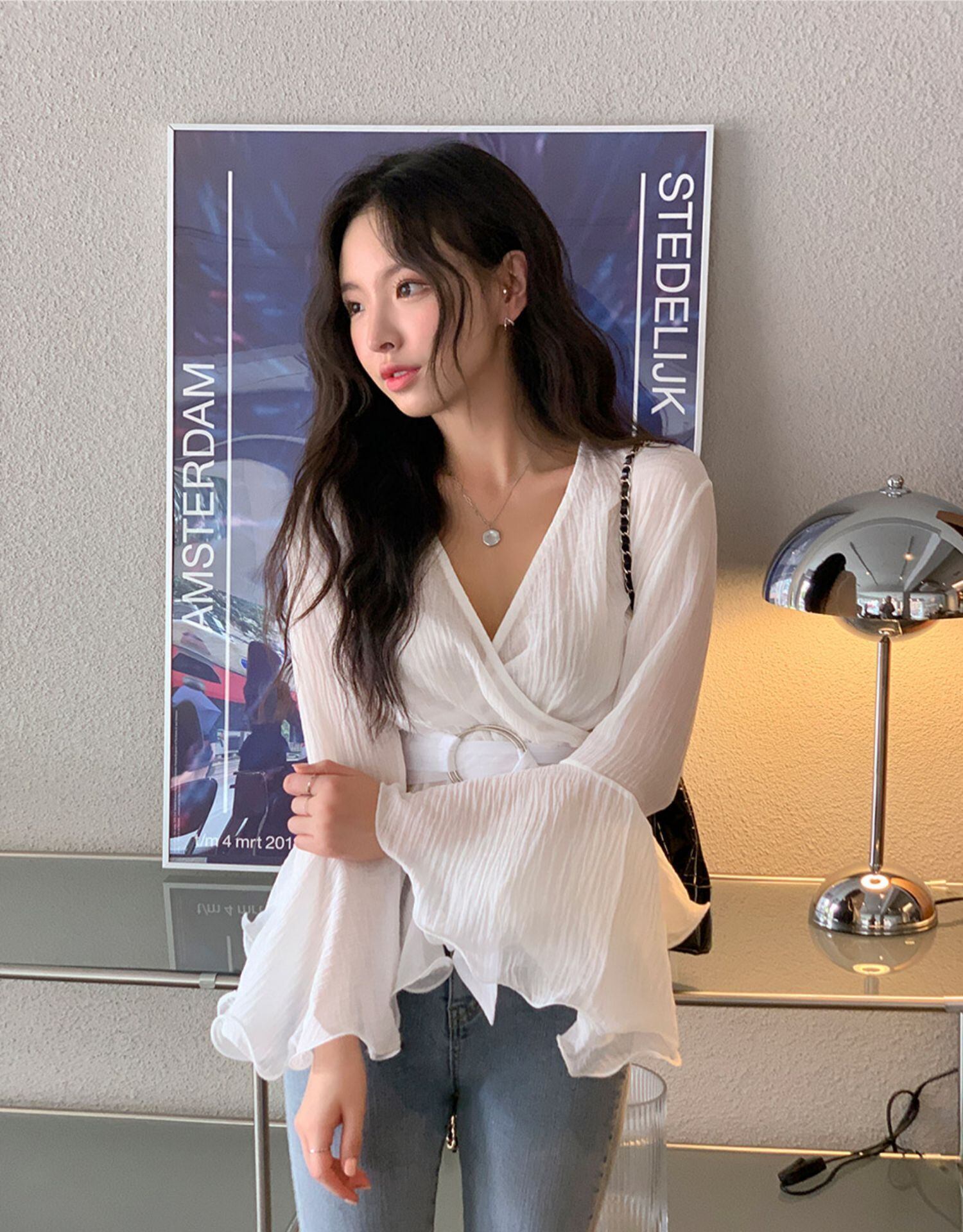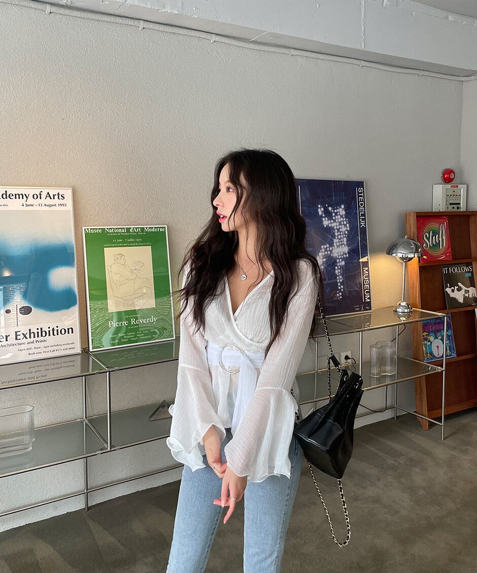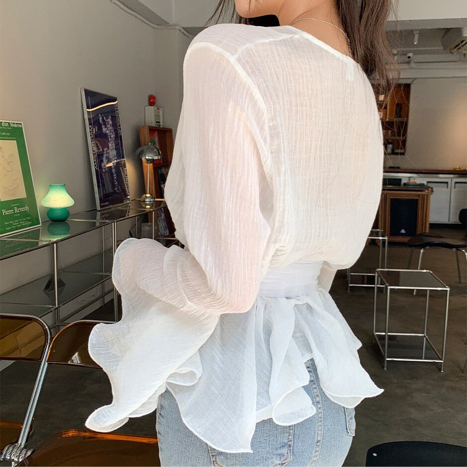 長袖ブラウス トップス シャツ ブラウス 袖あり 長袖 Vネック カシュクール ベルト ウエストマーク ハイウエスト 透け感 かわいい 大人可愛い きれいめ シンプル カジュアル 大人 上品 おしゃれ お洒落 かっこいい レトロ 大人可愛い 大人女子 こなれ感 キュート ガーリー エレガント モダン 主役級 存在感 無地 春 秋 10代 20代 30代 レディース OL 通勤 学生 通学 デート お出かけ 女子会 休日 着回し 普段使い 重ね着 韓国系 オルチャン 色展開 白 ホワイト ブラック ピンク
