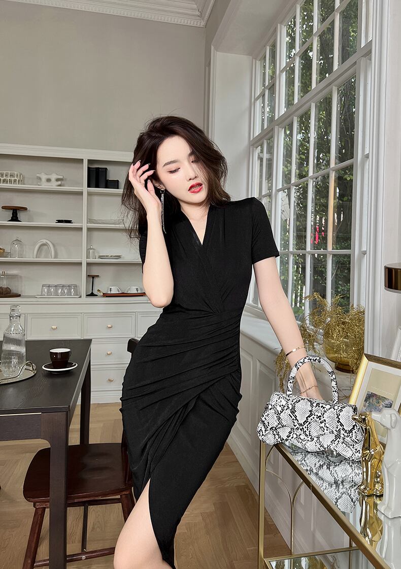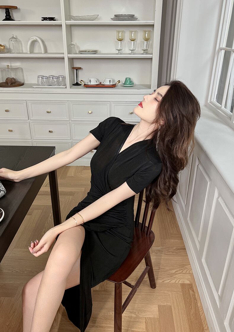 黒 中長 セクシー シック ボディウエスト 女性 薄いドレス ワンピース ワンピドレス 膝丈 膝下 半袖 Vネック マーメイド ウエストマーク スリット ハイウエスト 大人可愛い きれいめ シンプル 大人 上品 おしゃれ かっこいい 大人女子 こなれ感 クール モード系 セクシー エレガント 無地 春 夏 入学式 入園式 卒業式 卒園式 謝恩会 結婚式 二次会 披露宴 10代 20代 30代 レディース OL 学生 ホテル レストラン 美脚 脚長 S M L ブラック