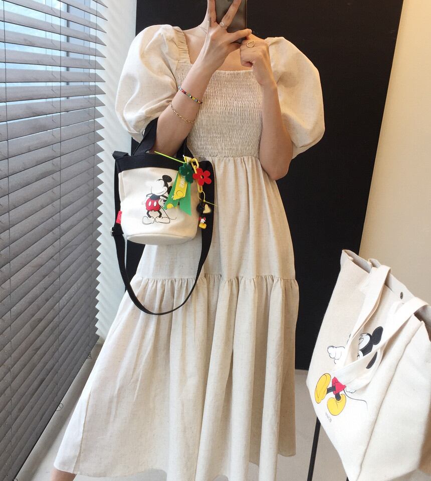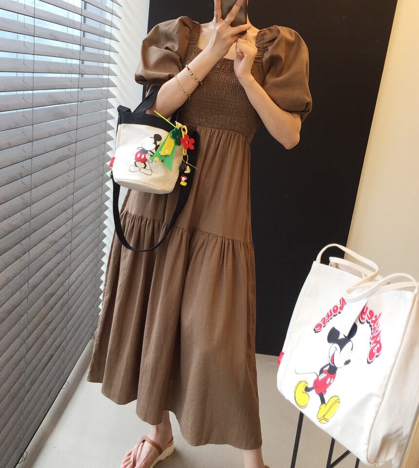 韓国 チック夏 エレガント 正方形の襟 スキニーバブルスリーブドレスロングドレス女性 ワンピース フレアワンピース ミモレ丈 ロング丈 マキシ丈 半袖 ボリューム袖 スクエアネック ストレート シフォン ウエストマーク ハイウエスト 大人可愛い きれいめ シンプル カジュアル おしゃれ レトロ 大人女子 こなれ感 ラフ ラブリー キュート ガーリー 無地 春 夏 10代 20代 30代 レディース OL 通勤 学生 通学 お出かけ お泊まり 休日 リゾート 旅行 普段使い ホワイト ブラウン