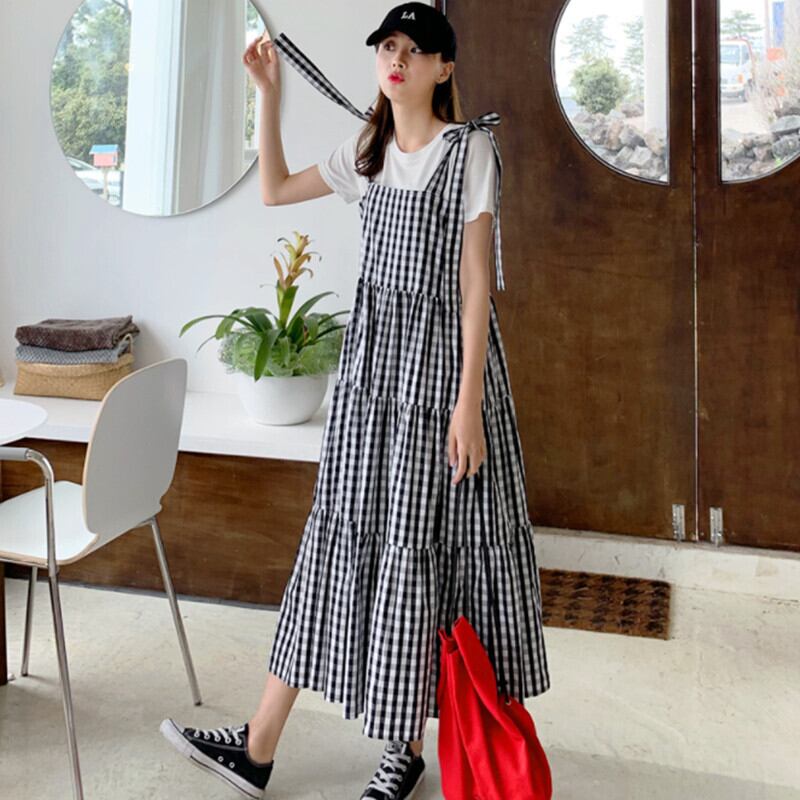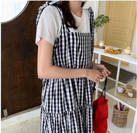 格子縞 ストラップスカート 膝丈 ドレス ハスエッジドールスカート 学生 スリングスカート ワンピース フレアワンピース ミモレ丈 ロング マキシ丈 袖なし ノースリーブ スクエアネック Aライン シフォン リボン 大人可愛い シンプル カジュアル おしゃれ 大人女子 こなれ感 ラフ ラブリー キュート 格子柄 夏 10代 20代 30代 レディース OL 通勤 学生 通学 デート お出かけ 女子会 お泊まり 休日 旅行 着回し 普段使い S M L XL ホワイト ブラック