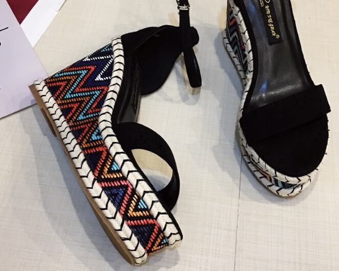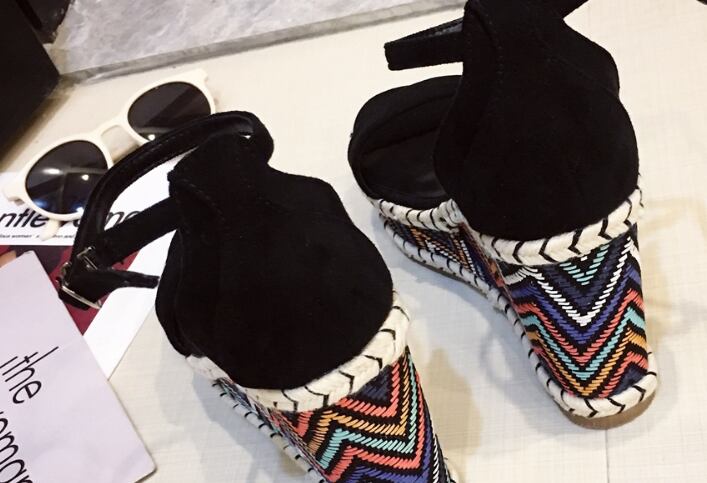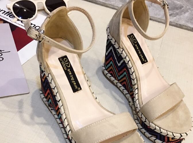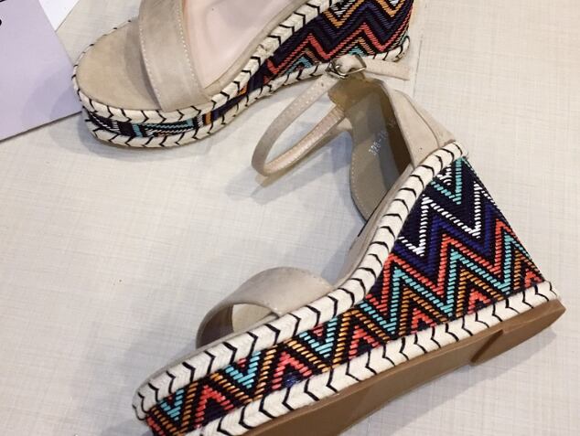 ヒール部分のエスニック柄がかわいいサンダルです。