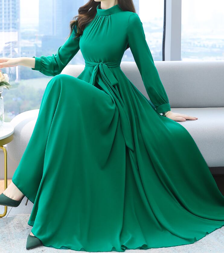 フレアワンピース ワンピース フレアワンピース ワンピドレス ロング ロング丈 袖あり 長袖 ハイネック フレア Aライン シフォン ウエストマーク ウエストリボン ハイウエスト かわいい 大人可愛い きれいめ シンプル カジュアル 大人 上品 おしゃれ お洒落 かっこいい レトロ 大人可愛い 大人女子 こなれ感 キュート ガーリー エレガント モダン 主役級 存在感 無地 春 秋 10代 20代 30代 レディース 学生 通学 デート お出かけ 女子会 休日 着回し 普段使い 重ね着 韓国系 オルチャン