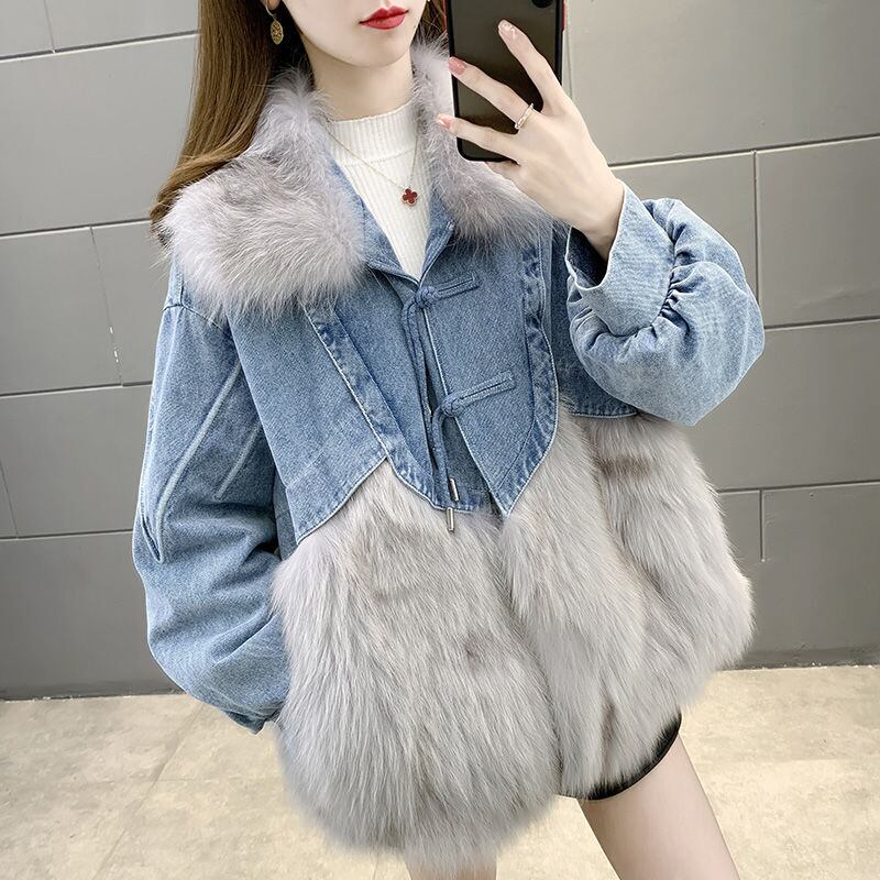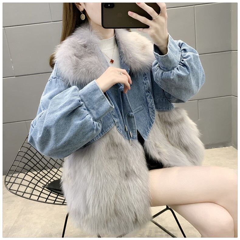 ふわふわのファーが存在感たっぷりのデニムジャケット。