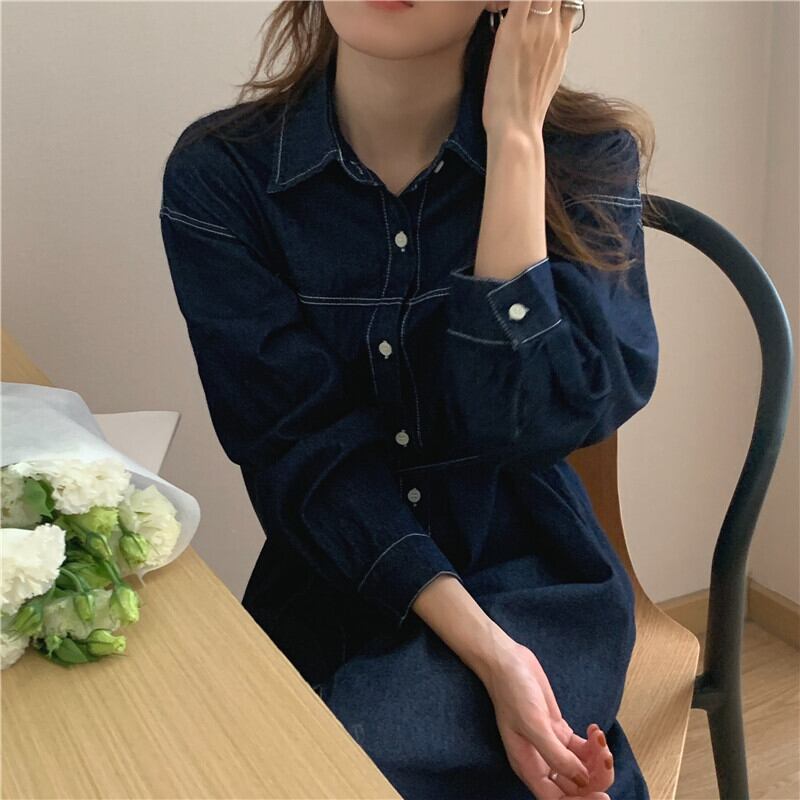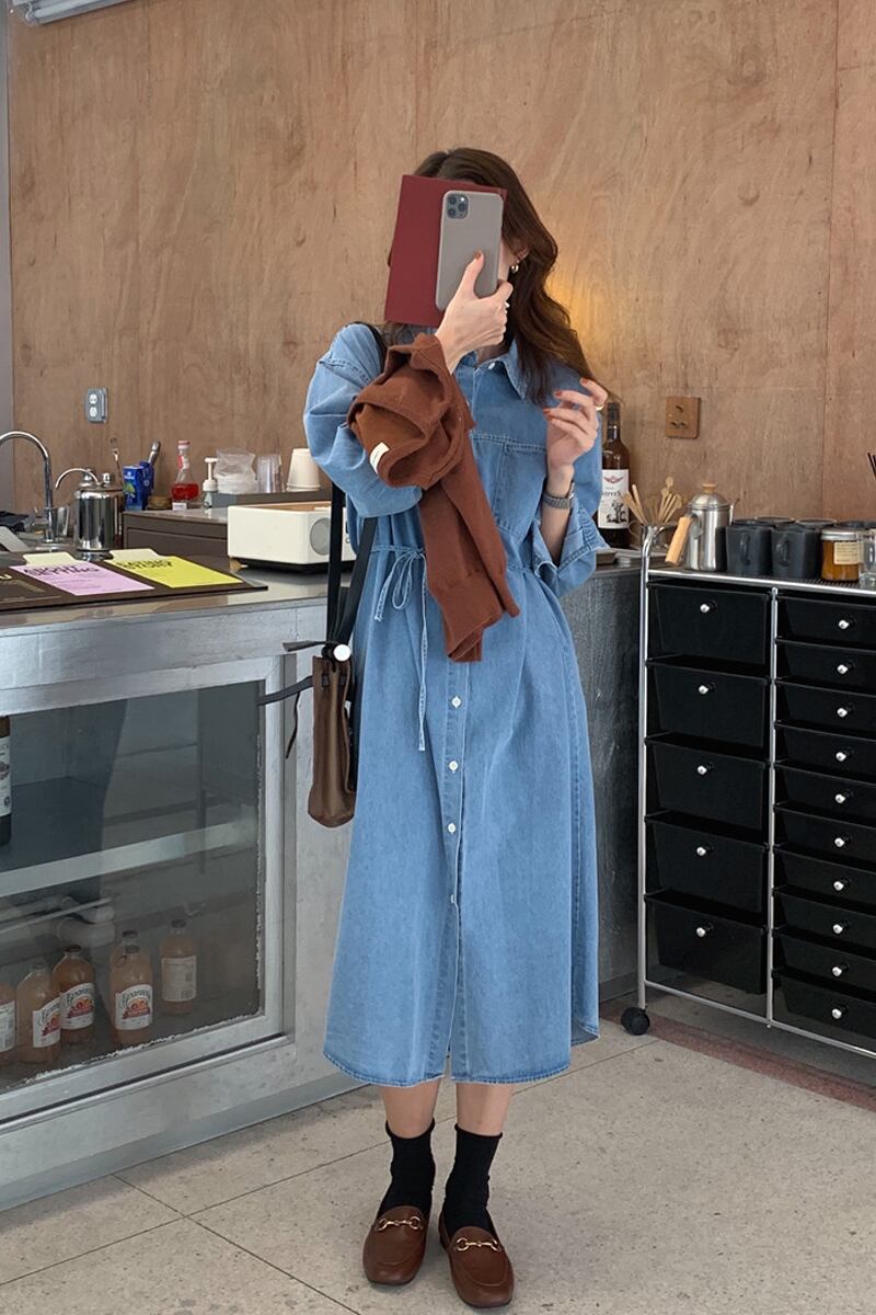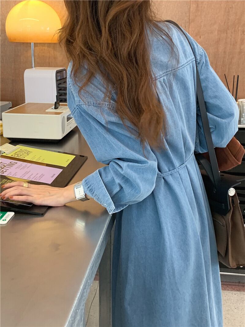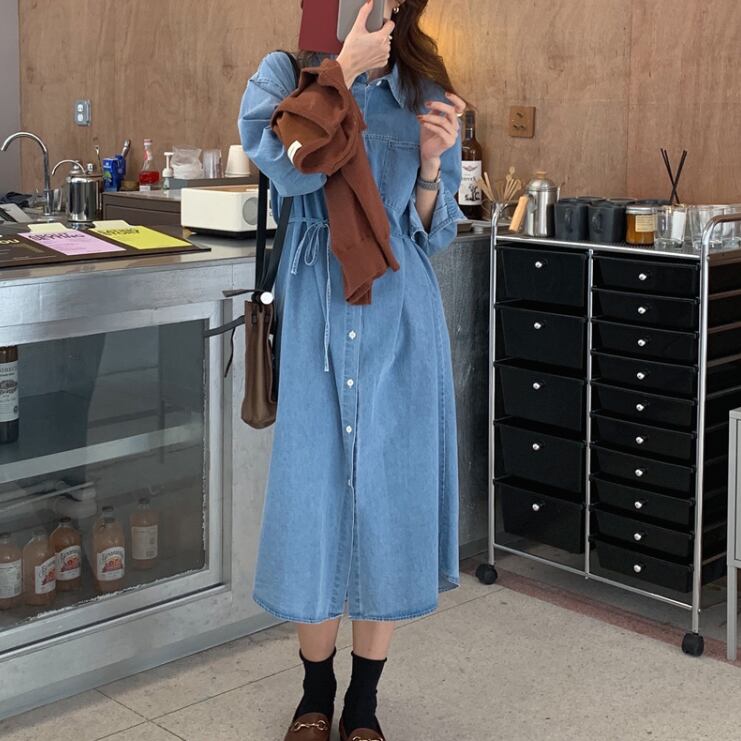 デニムシャツワンピース ワンピース シャツワンピース ミモレ ミモレ丈 ロング ロング丈 袖あり 長袖 襟付き ウエストマーク ウエストリボン 前開き かわいい 大人可愛い きれいめ シンプル カジュアル 大人 上品 おしゃれ お洒落 かっこいい レトロ 大人可愛い 大人女子 こなれ感 キュート ガーリー モダン 主役級 存在感 無地 春 秋 10代 20代 30代 レディース 学生 通学 デート お出かけ 女子会 休日 着回し 普段使い 重ね着 韓国系 オルチャン 色展開 ネイビー ライトブルー
