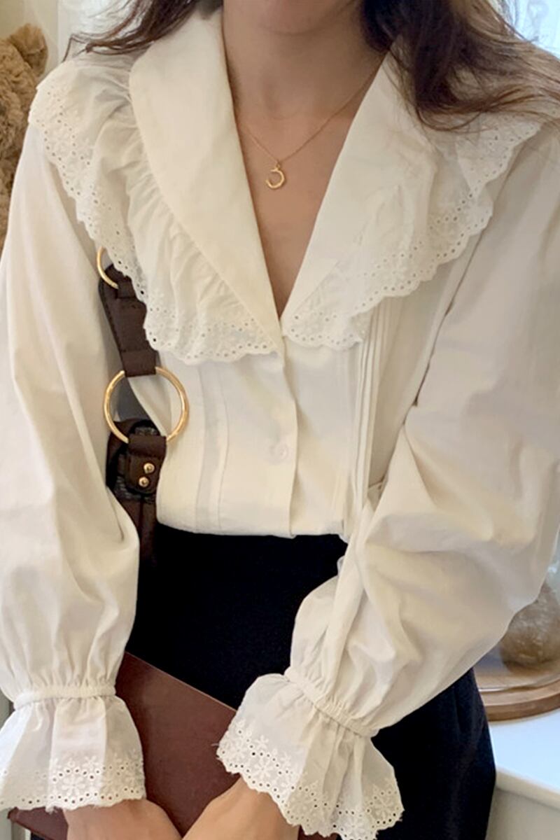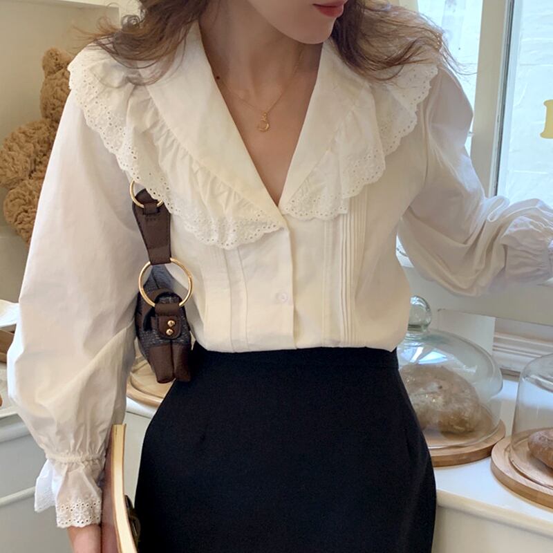 Ⅴネックブラウス トップス シャツ ブラウス 袖あり 長袖 Vネック 襟付き レース フリル 前開き かわいい 大人可愛い きれいめ シンプル カジュアル 大人 上品 おしゃれ お洒落 かっこいい レトロ 大人可愛い 大人女子 こなれ感 キュート ガーリー モダン 主役級 存在感 無地 ストライプ 春 秋 10代 20代 30代 レディース OL 通勤 学生 通学 デート お出かけ 女子会 休日 着回し 普段使い 重ね着 韓国系 オルチャン 色展開 白 ホワイト