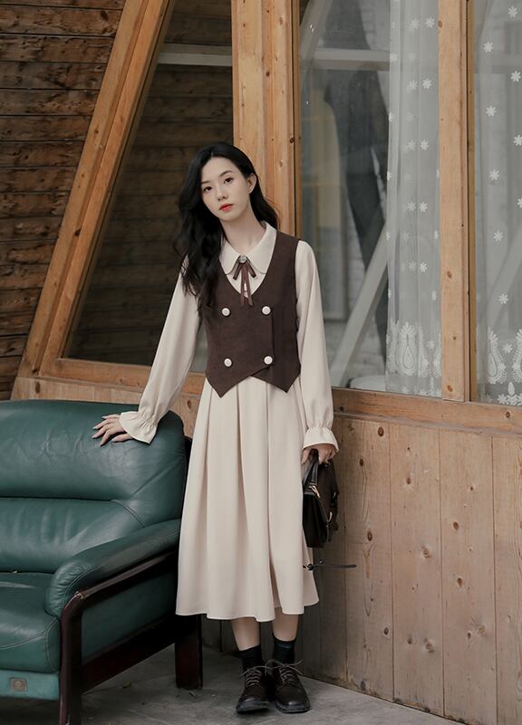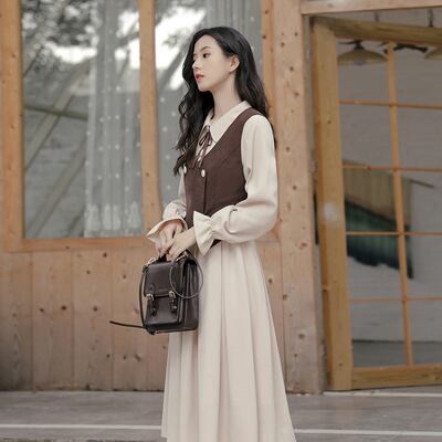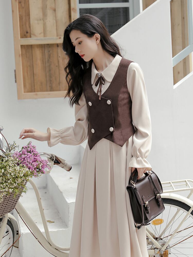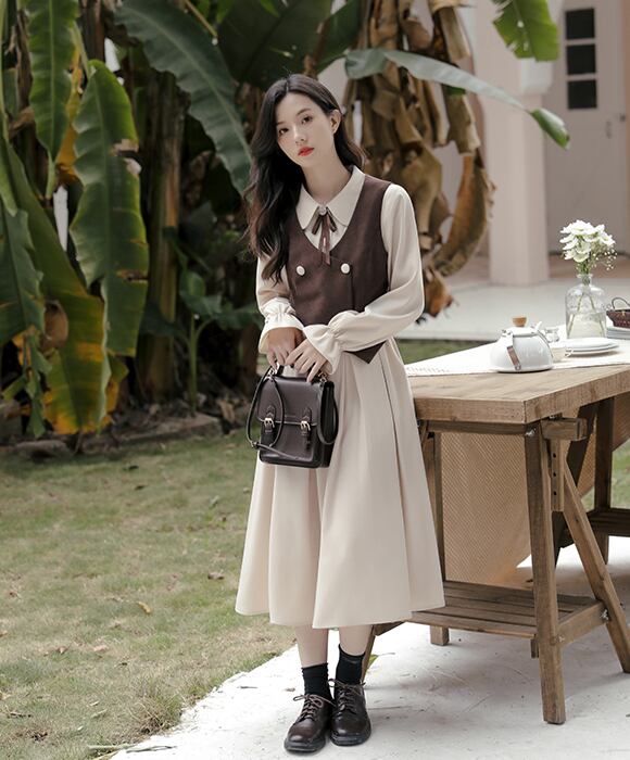 ボウタイワンピース ワンピース ベスト フレアワンピース ワンピドレス ミニ ミニ丈 ミモレ ミモレ丈 袖あり 長袖 襟付き フレア リボン ハイウエスト 2点セット ツーピース かわいい 大人可愛い きれいめ シンプル カジュアル 大人 上品 おしゃれ お洒落 かっこいい レトロ 大人可愛い 大人女子 こなれ感 キュート ガーリー モダン 主役級 存在感 無地 ストライプ 春 秋 10代 20代 30代 レディース 学生 通学 デート お出かけ 女子会 休日 着回し 普段使い 重ね着 韓国系 オルチャン