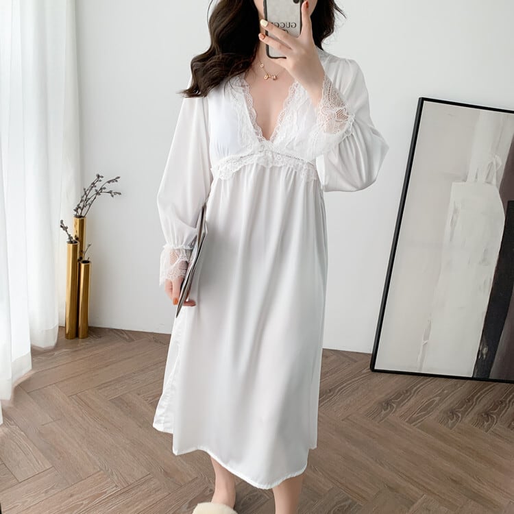 レースワンピース ルームウェア パジャマ 部屋着 寝巻き ナイトウェア ネグリジェ フレアワンピース ロング ロング丈 袖あり 長袖 Vネック フレア レース ハイウエスト ポリエステル かわいい 大人可愛い きれいめ シンプル カジュアル 大人 上品 おしゃれ お洒落 かっこいい レトロ 大人可愛い 大人女子 こなれ感 キュート ガーリー モダン 主役級 存在感 無地 春 夏 秋 10代 20代 30代 レディース 女子会 お泊まり 休日 着回し 普段使い 重ね着 韓国系 オルチャン サイズ M L