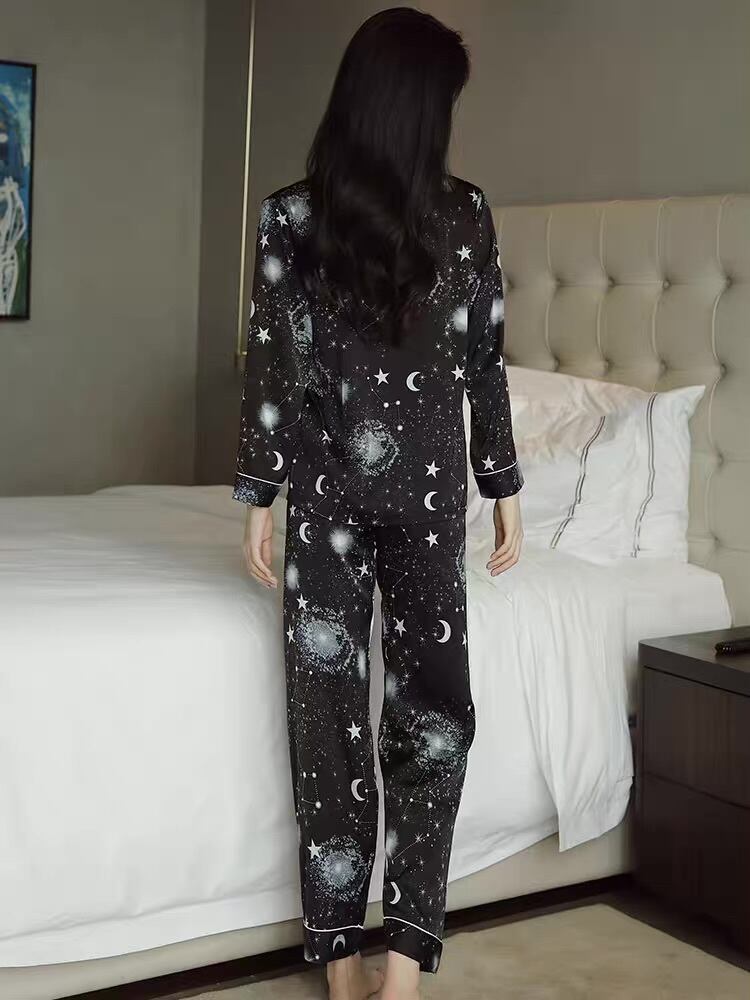 トップス ボトムス パンツ ルームウェア パジャマ シャツ ロング丈 袖あり 半袖 長袖 襟付き POLO襟 ストレート ポケット 薄手 大人可愛い おしゃれ 大人女子 こなれ感 ラブリー キュート ガーリー エレガント 主役級 柄 ギャラクシー 宇宙 春 秋 2021 10代 20代 30代 レディース 女子会 お泊まり 休日 旅行 着回し 普段使い 楽ちん モテ 美脚 定番 インスタ映え サイズ M L XL 色展開 ブラック
