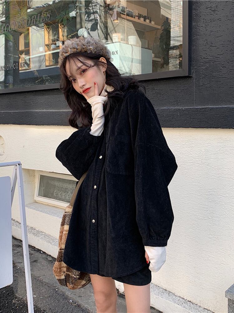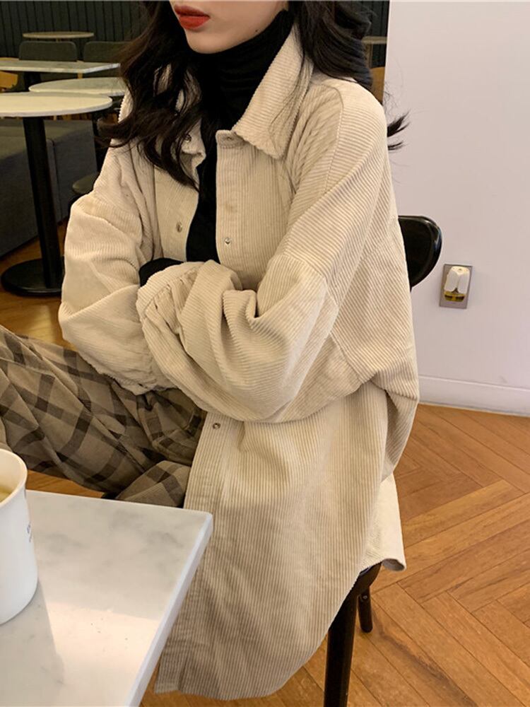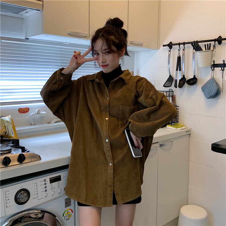 コーデュロイシャツ トップス シャツ ブラウス 袖あり 長袖 襟付き 前開き かわいい 大人可愛い きれいめ シンプル カジュアル 大人 上品 おしゃれ お洒落 かっこいい レトロ 大人可愛い 大人女子 こなれ感 ボーイッシュ スポーティー ルーズ クール 主役級 存在感 無地 秋 冬 10代 20代 30代 レディース 学生 通学 デート お出かけ 公園デビュー 女子会 休日 着回し 普段使い 重ね着 韓国系 オルチャン 色展開 黒 ブラック 茶色 ブラウン ピンク アプリコット