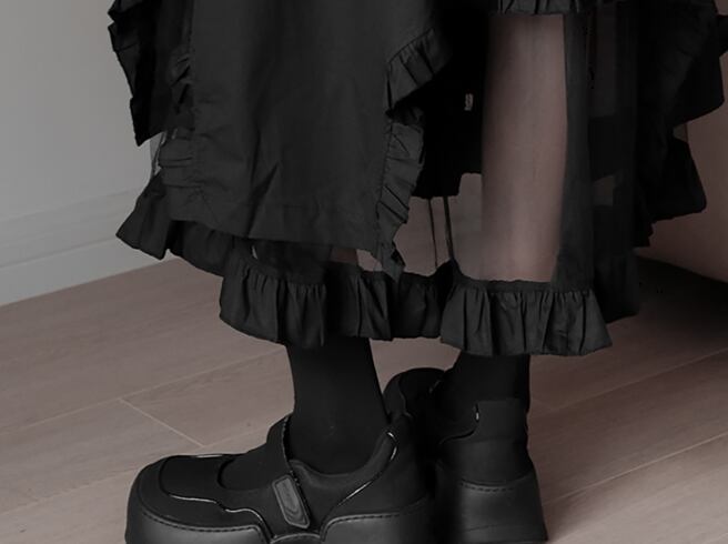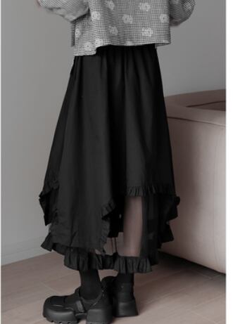 フリル変形ロングスカート ボトム ロング丈 スカート フリル 透け感 大人スタイル 大人可愛い きれいめ シンプル カジュアル 大人 上品 おしゃれ かっこいい レトロ アジアン 大人可愛い 大人女子 こなれ感 ラブリー キュート 個性的 存在感 無地 春 秋 冬 10代 20代 30代 40代 50代 レディース ママ 女の子 オフィス ビジネス OL 通勤 学生 通学 デート お出かけ 女子会 休日 リゾート 旅行 着回し コーデ スタイル モテ サイズ