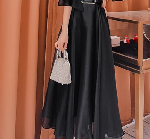 ブラックロングスカート ボトム ロング丈 光沢 爽やか 大人スタイル 大人可愛い きれいめ シンプル カジュアル 大人 上品 おしゃれ かっこいい レトロ アジアン 大人可愛い 大人女子 こなれ感 ラブリー キュート 個性的 存在感 無地 春 秋 冬 10代 20代 30代 40代 50代 レディース ママ 女の子 ビジネス パーティー フォーマル イベント デート お出かけ 女子会 休日 リゾート 旅行 着回し コーデ スタイル モテ サイズ