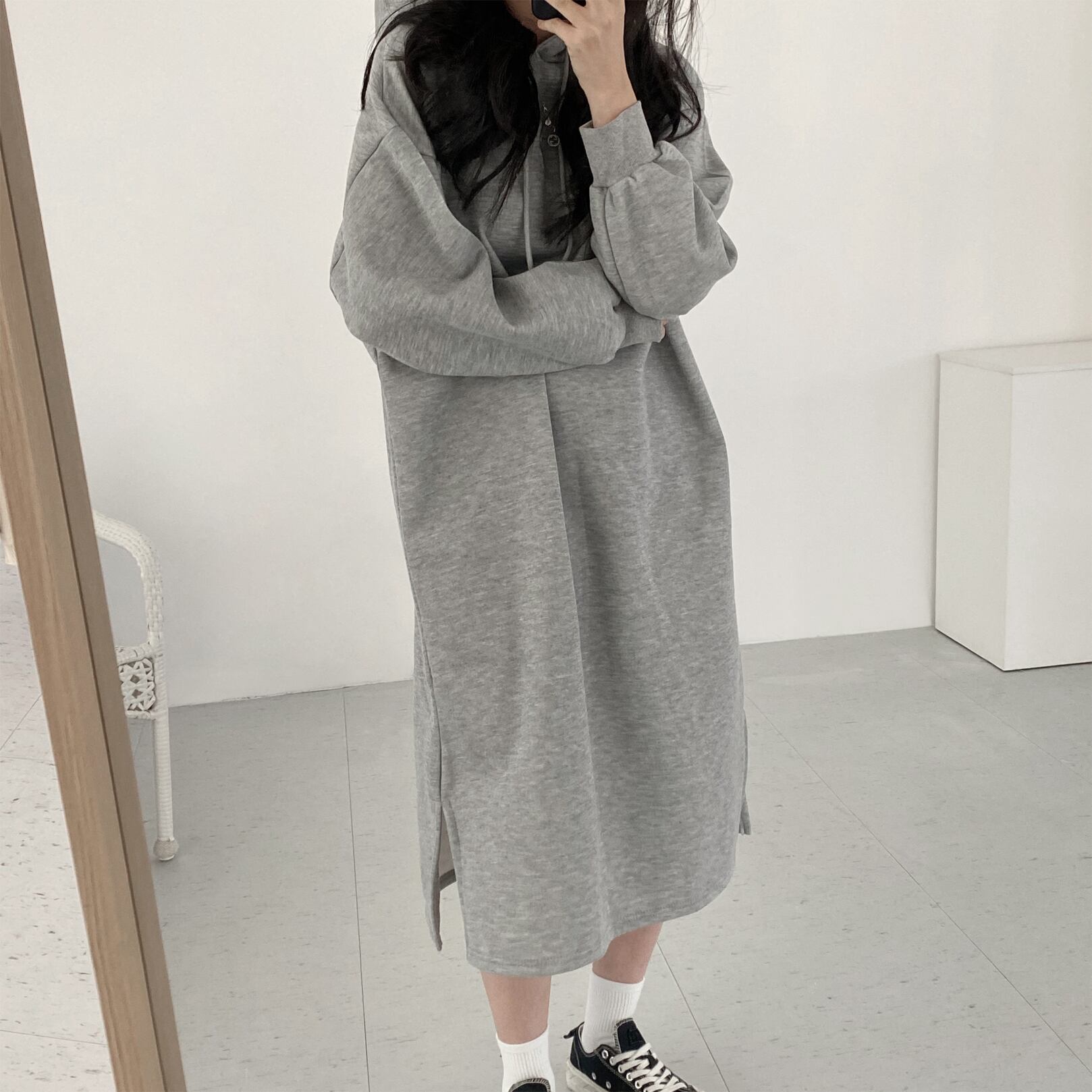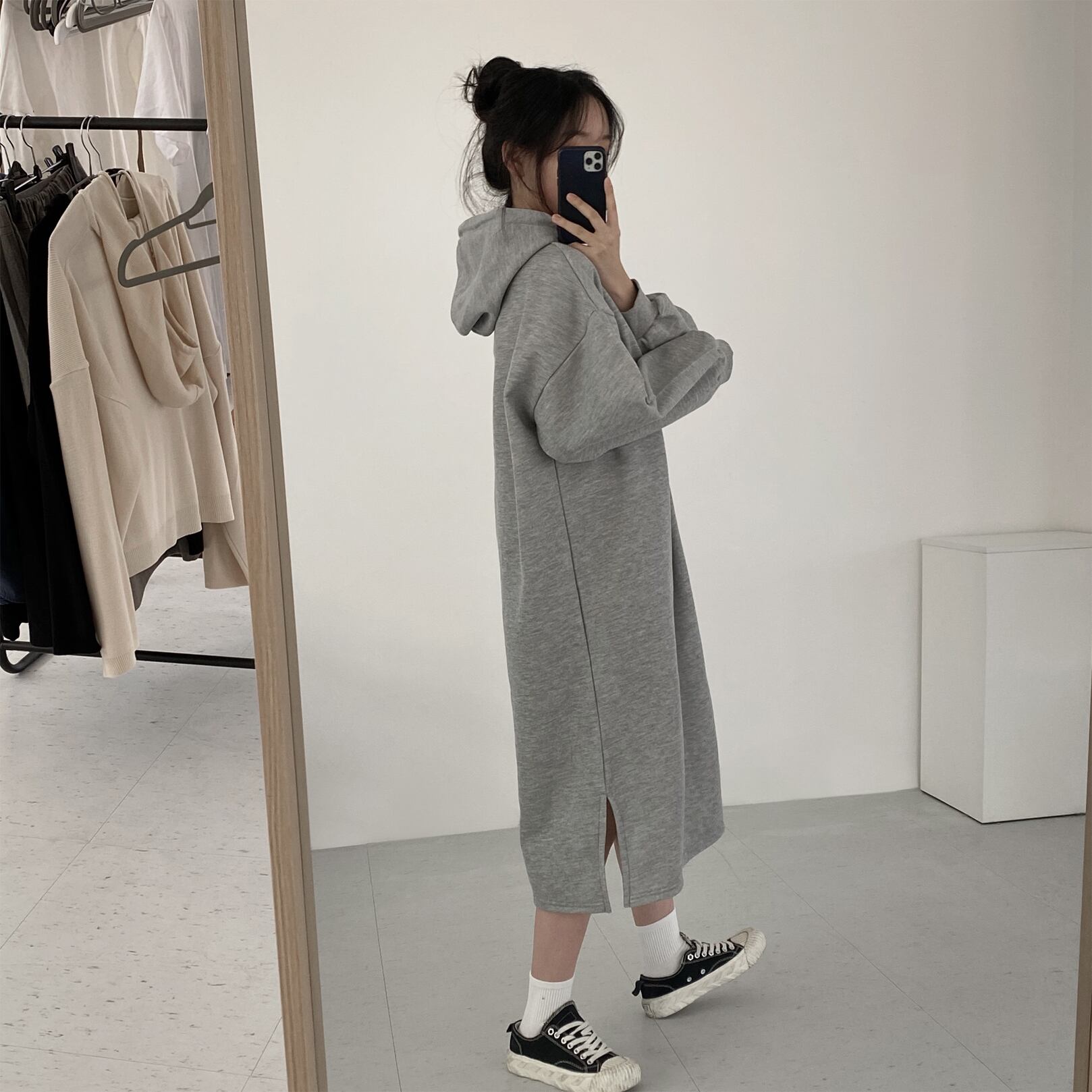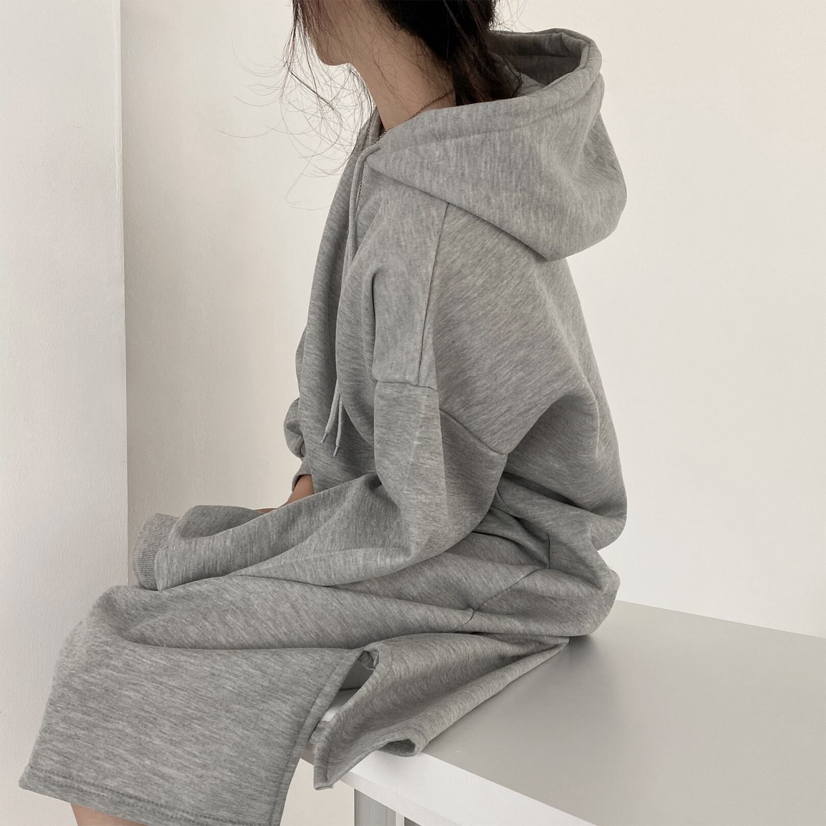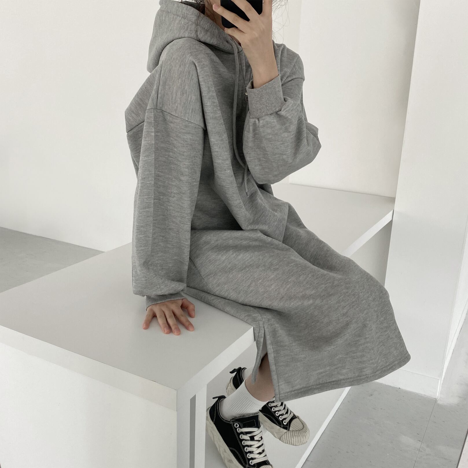 パーカーワンピース ワンピース フレアワンピース ミモレ ミモレ丈 袖あり 長袖 スリット サイドスリット フード付き かわいい 大人可愛い きれいめ シンプル カジュアル 大人 上品 おしゃれ お洒落 かっこいい レトロ 大人可愛い 大人女子 こなれ感 キュート ガーリー クール 主役級 存在感 無地 春 秋 冬 10代 20代 30代 レディース 学生 通学 デート お出かけ 公園デビュー 女子会 休日 着回し 普段使い 重ね着 韓国系 オルチャン 色展開 黒 ブラック 灰色 グレー