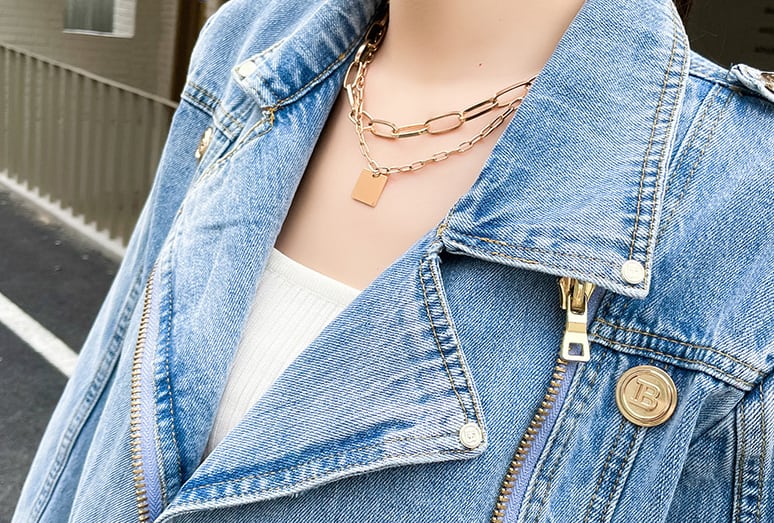ショート丈のきれいめブルーのデニムジャケット。