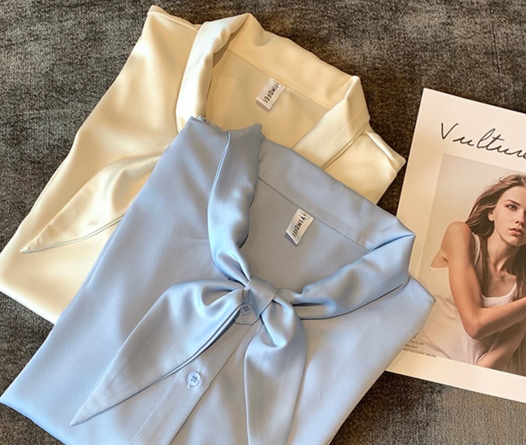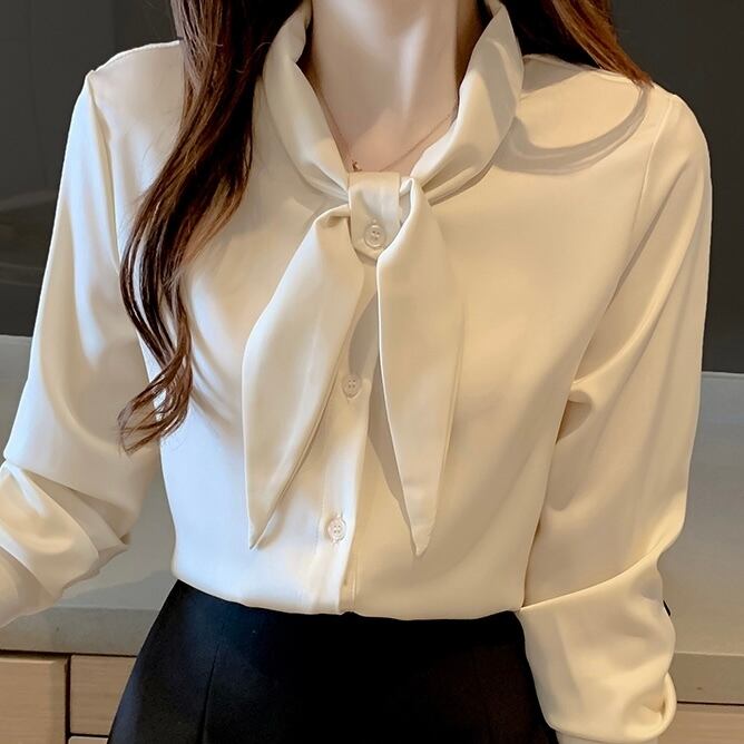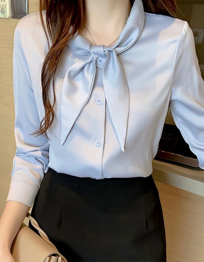 トップス シャツ ミディアム丈 袖あり 長袖 襟付き スカーフカラー ストレート リボン きれいめ シンプル 上品 おしゃれ かっこいい 大人可愛い 大人女子 エレガント フォーマル とろみ感 無地 春 秋 冬 謝恩会 2022 20代 30代 40代 50代 レディース 通勤 パーティー イベント ホテル レストラン 着回し 重ね着 モテ 新作 定番 サイズ S M L XL 2XL 色展開 ホワイト ブルー グリーン ニュアンスカラー アプリコット
