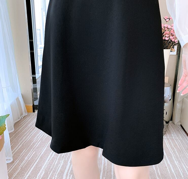 腰をきゅっと絞ってウエストマーク、裾に向かって広がるAラインフレアシルエット、女性らしさをグンとアップ。