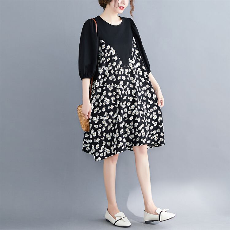 ドッキングワンピース ワンピース フレアワンピース ワンピドレス 膝丈 ひざ丈 袖あり 長袖 ラウンドネック フレア Aライン ドッキング 綿 かわいい 大人可愛い きれいめ シンプル カジュアル 大人 上品 おしゃれ お洒落 かっこいい レトロ 大人可愛い 大人女子 こなれ感 キュート ガーリー クール 主役級 存在感 柄 花柄 春 秋 10代 20代 30代 レディース OL 通勤 学生 通学 デート お出かけ 公園デビュー 女子会 休日 パーティー イベント 着回し 普段使い 重ね着 韓国系