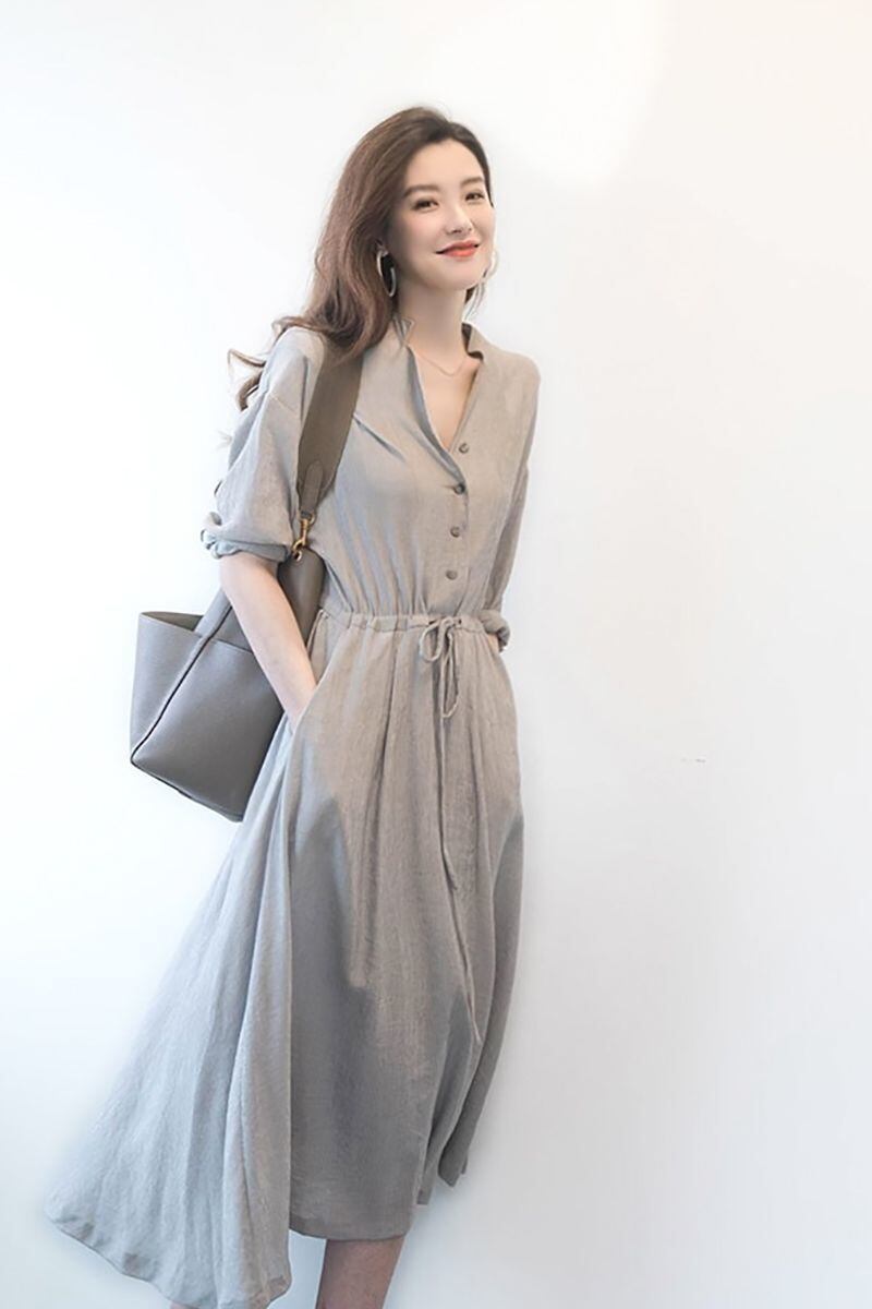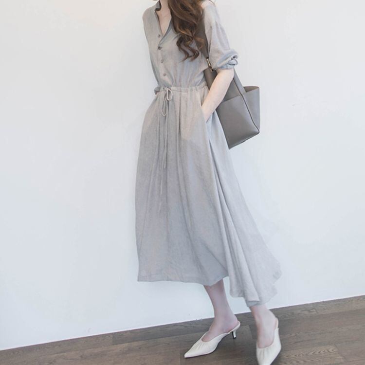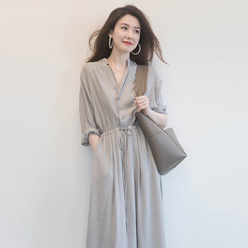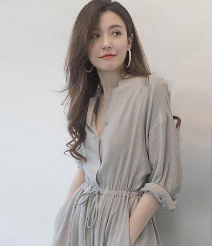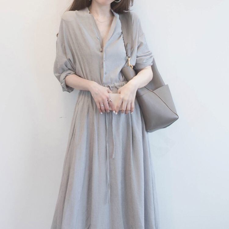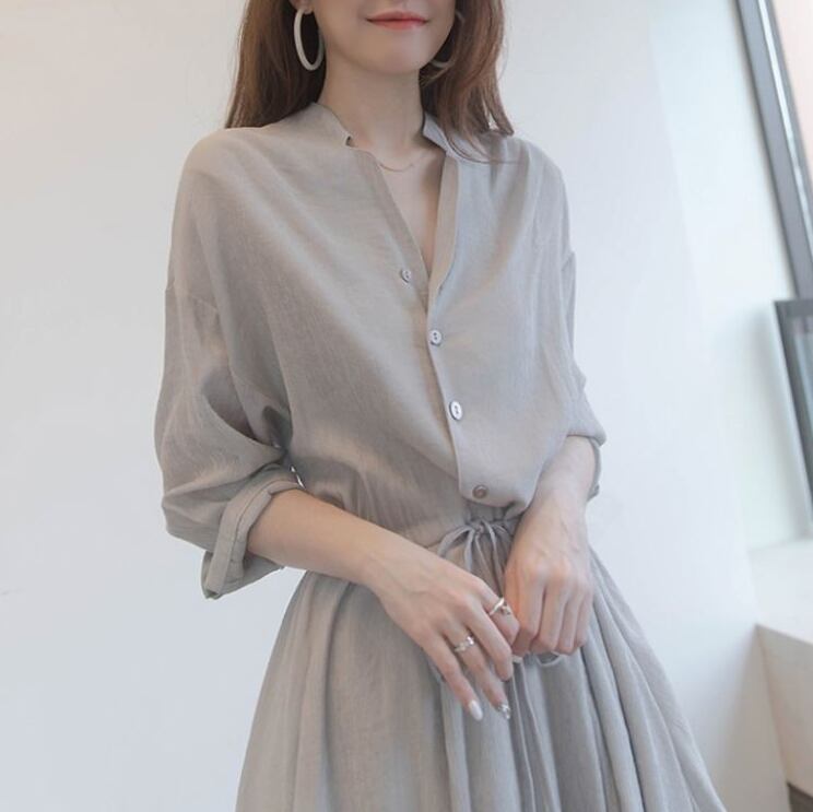 シンプルなデザインのドロストシャツワンピース。