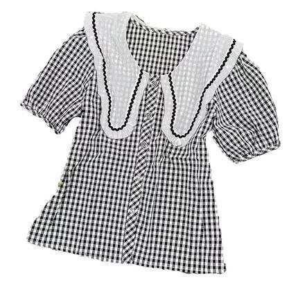 ギンガムチェックブラウス トップス シャツ ブラウス 袖あり 半袖 パフスリーブ 襟付き レース 前開き かわいい 大人可愛い きれいめ シンプル カジュアル 大人 上品 おしゃれ お洒落 かっこいい レトロ 大人可愛い 大人女子 こなれ感 キュート ガーリー クール 主役級 存在感 柄 チェック柄 春 夏 秋 10代 20代 30代 レディース OL 通勤 学生 通学 デート お出かけ 公園デビュー 女子会 休日 着回し 普段使い 重ね着 韓国系 オルチャン サイズ S M L 色展開 黒