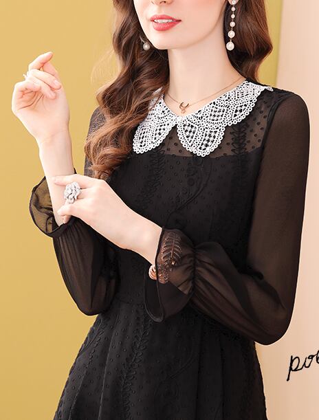 レース襟ワンピース ワンピース フレアワンピース ワンピドレス 膝丈 ひざ丈 袖あり 長袖 ラウンドネック 襟付き フレア Aライン レース ハイウエスト 透け感 ポリエステル かわいい 大人可愛い きれいめ シンプル カジュアル 大人 上品 おしゃれ お洒落 かっこいい レトロ 大人可愛い 大人女子 こなれ感 キュート ガーリー クール 主役級 存在感 無地 春 秋 10代 20代 30代 レディース OL 通勤 学生 通学 デート お出かけ 公園デビュー 女子会 休日 着回し 普段使い 重ね着 韓国系