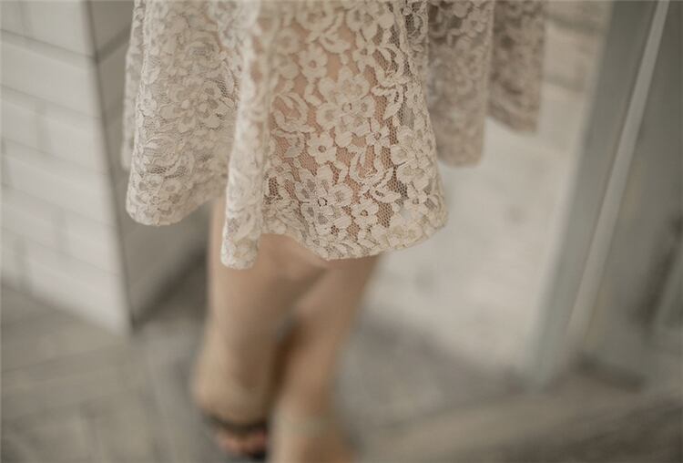 やわらかな透け感の総レースのノースリーブワンピース。