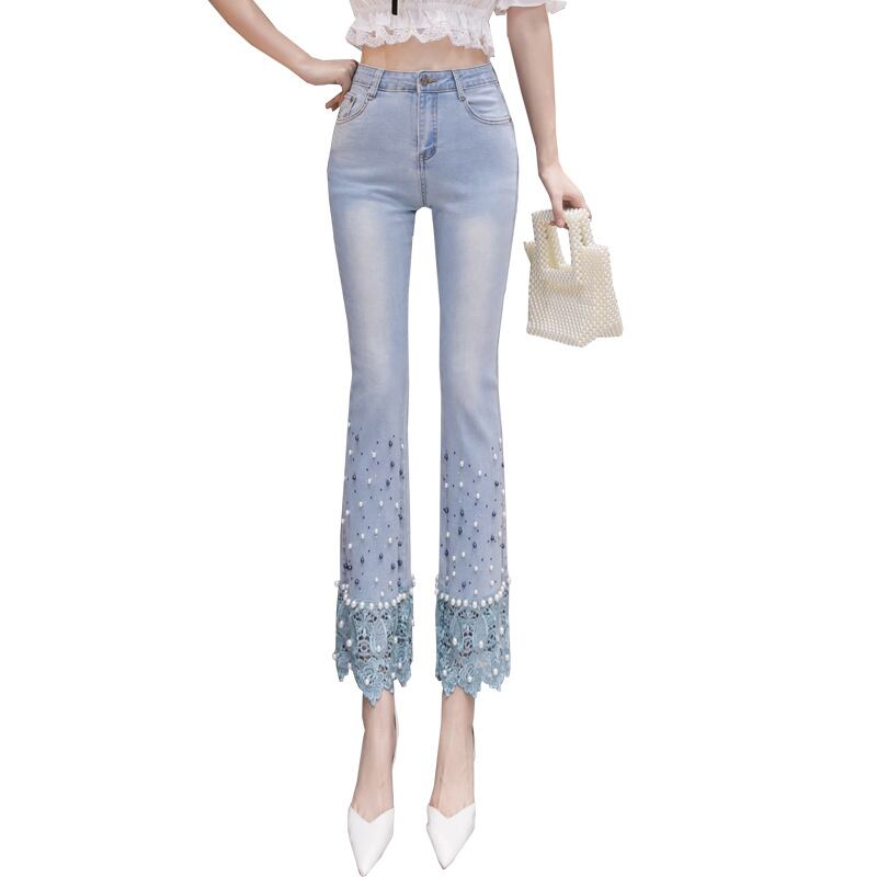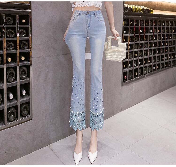 デニムフレアパンツ ボトムス パンツ デニムパンツ 9分丈 アンクル丈 フレア セミフレア レース ハイウエスト デニム かわいい 大人可愛い きれいめ シンプル カジュアル 大人 上品 おしゃれ お洒落 大人可愛い 大人女子 こなれ感 キュート ガーリー モダン 主役級 存在感 無地 春 夏 秋 10代 20代 30代 レディース 学生 通学 デート お出かけ 女子会 休日 着回し 普段使い 韓国系 オルチャン サイズ S M L XL 2XL 色展開 青 ブルー